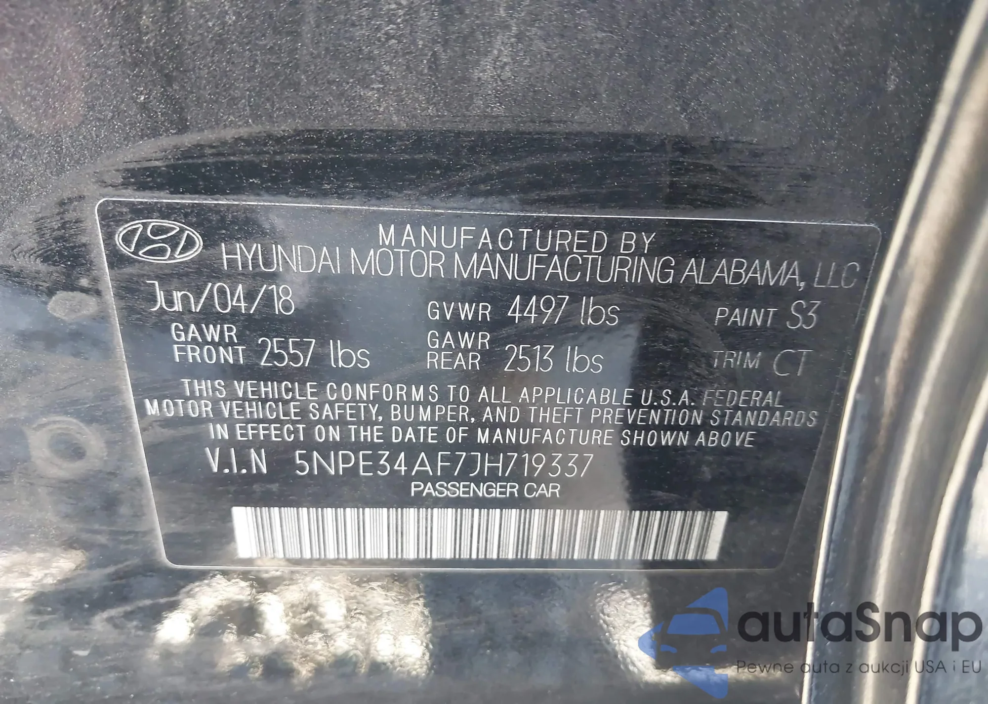 • VIN 5NPE34AF7JH719337