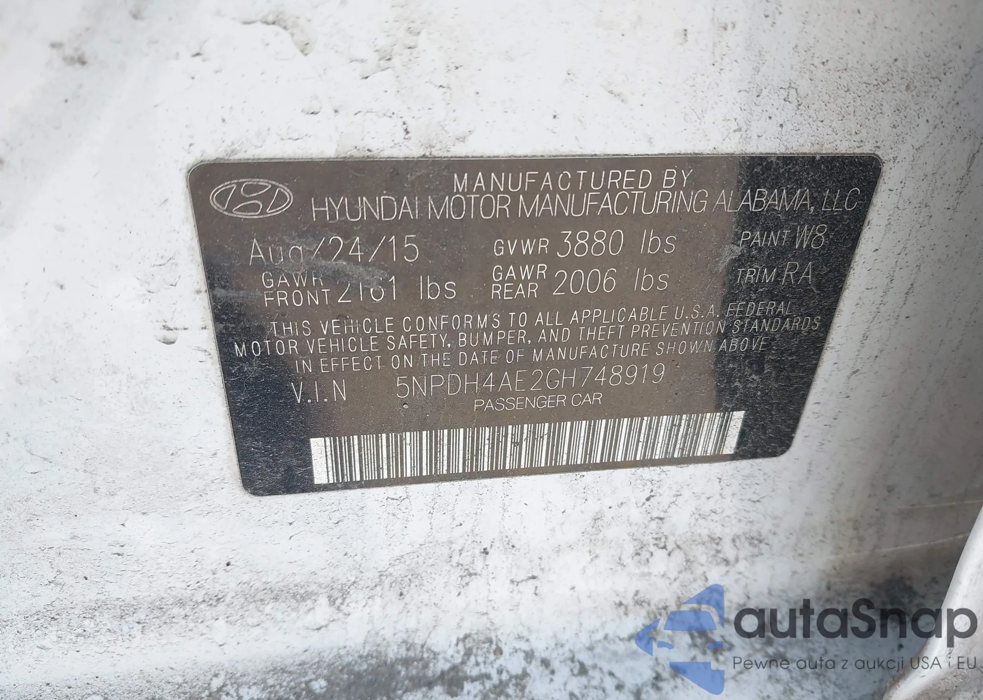 LOT: 42249197 VIN: 5NPDH4AE2GH748919
