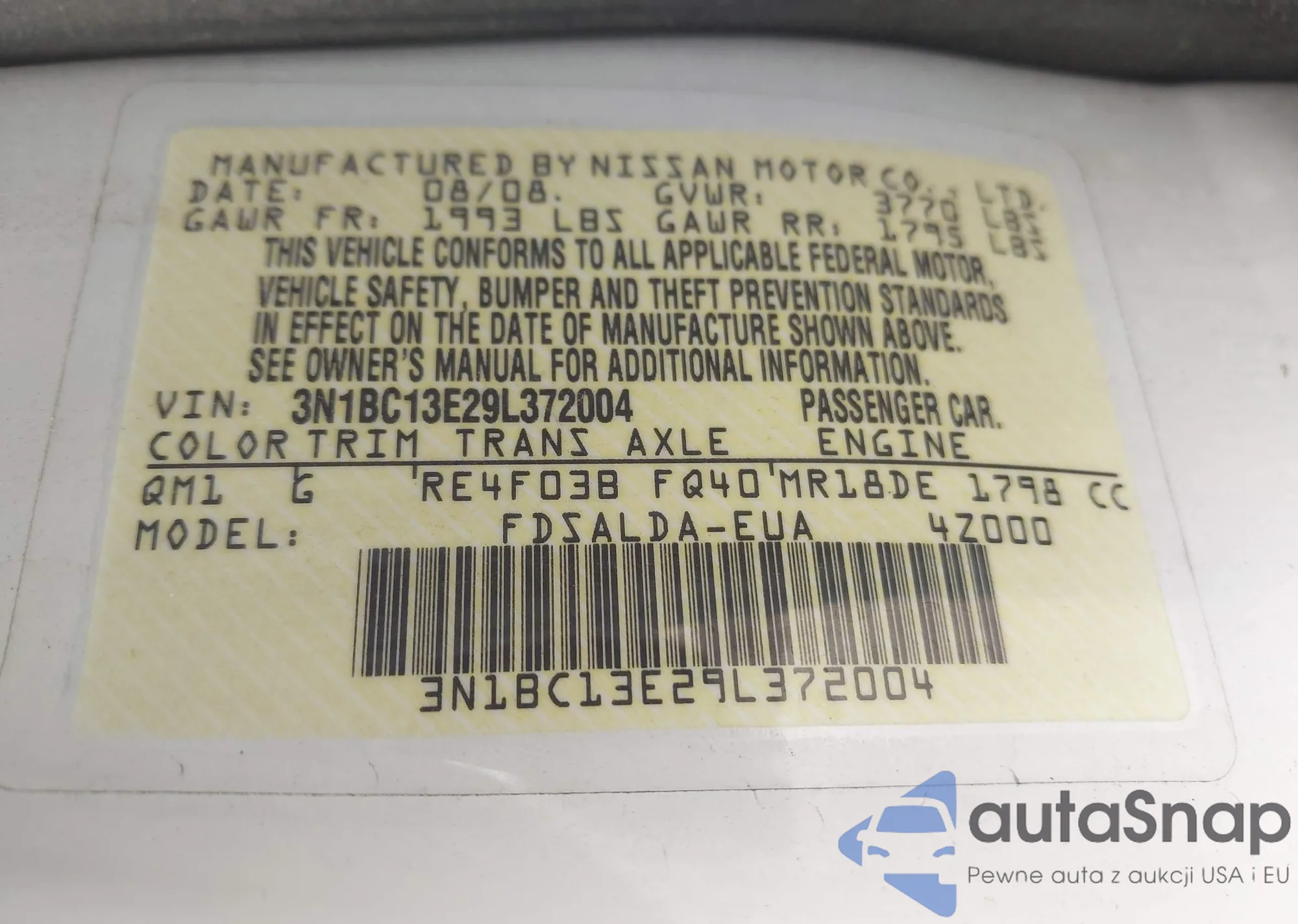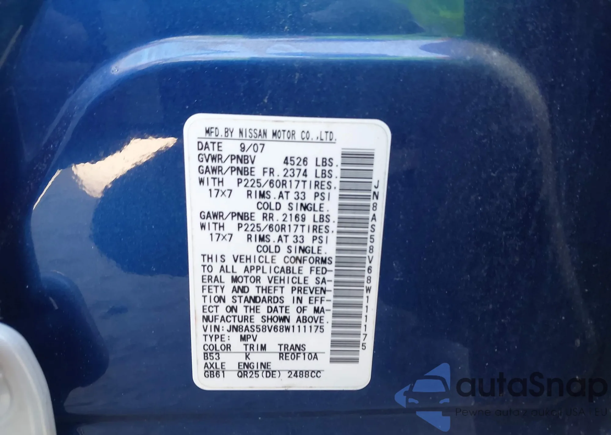 LOT: 42213855 VIN: JN8AS58V68W111175