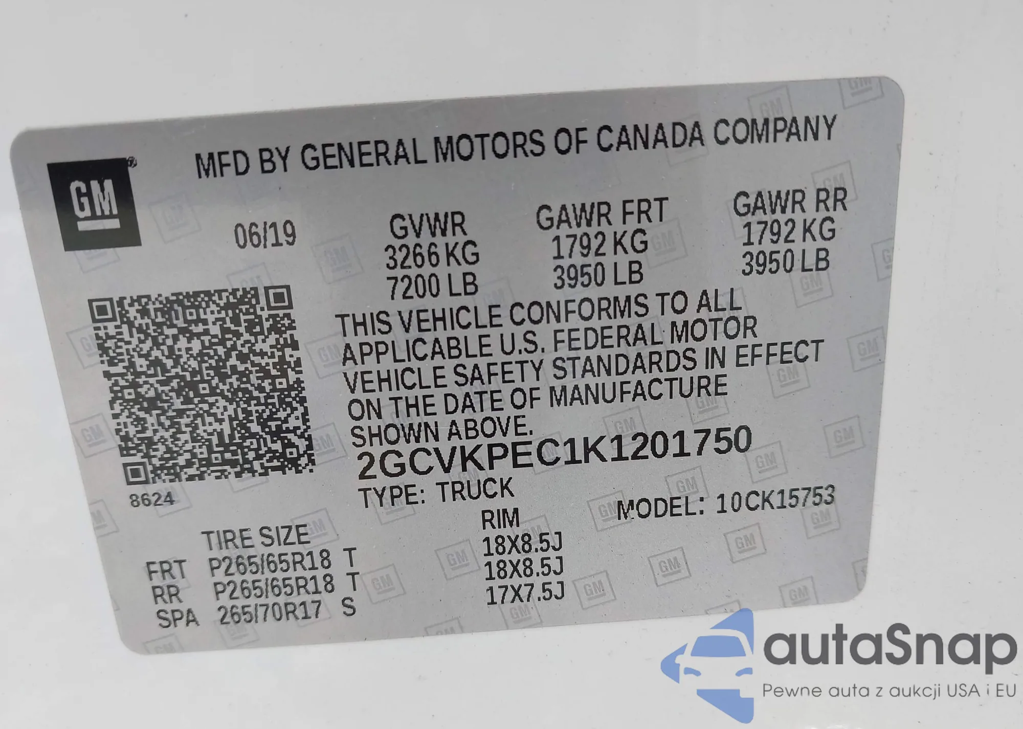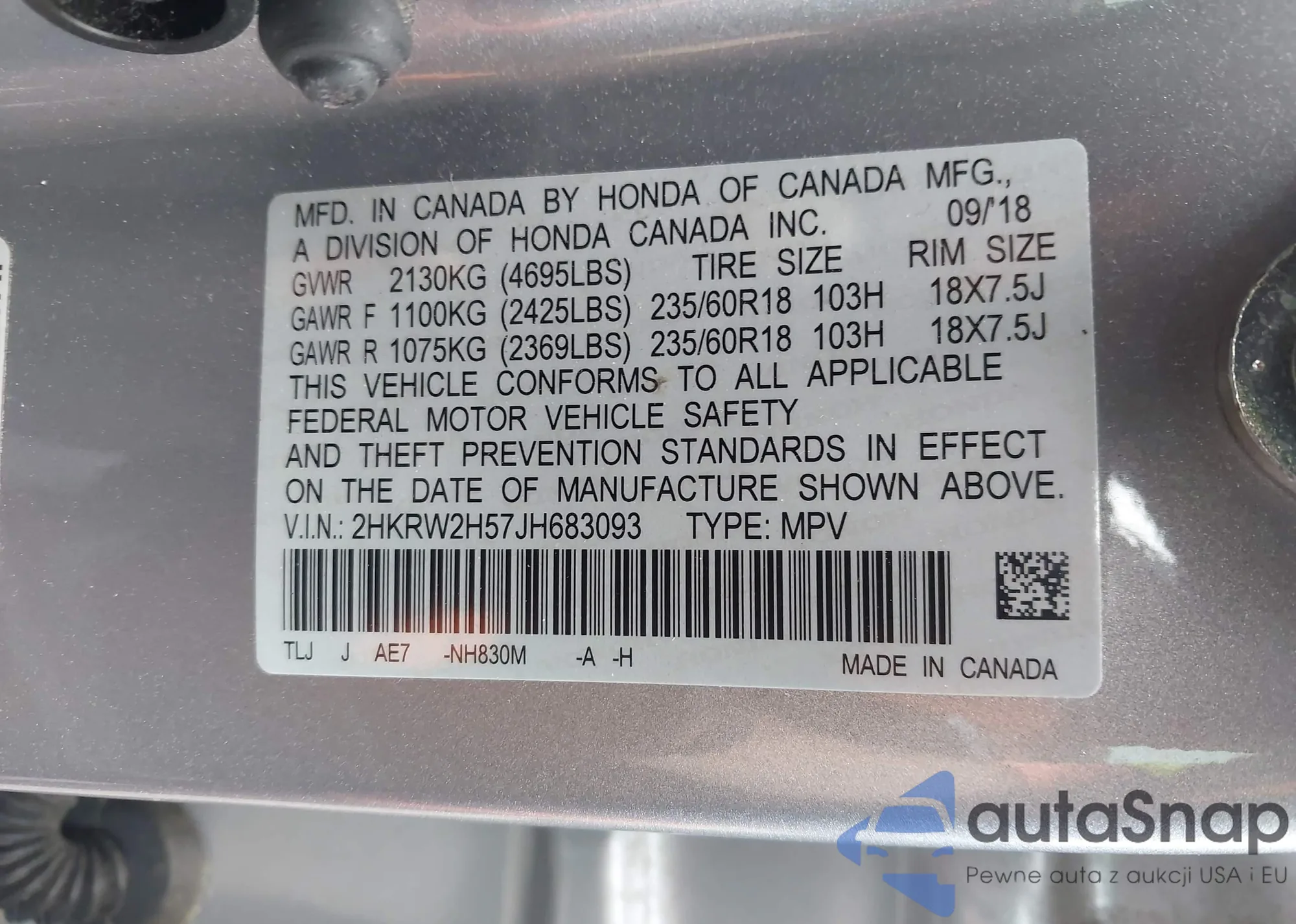 • VIN 2HKRW2H57JH683093