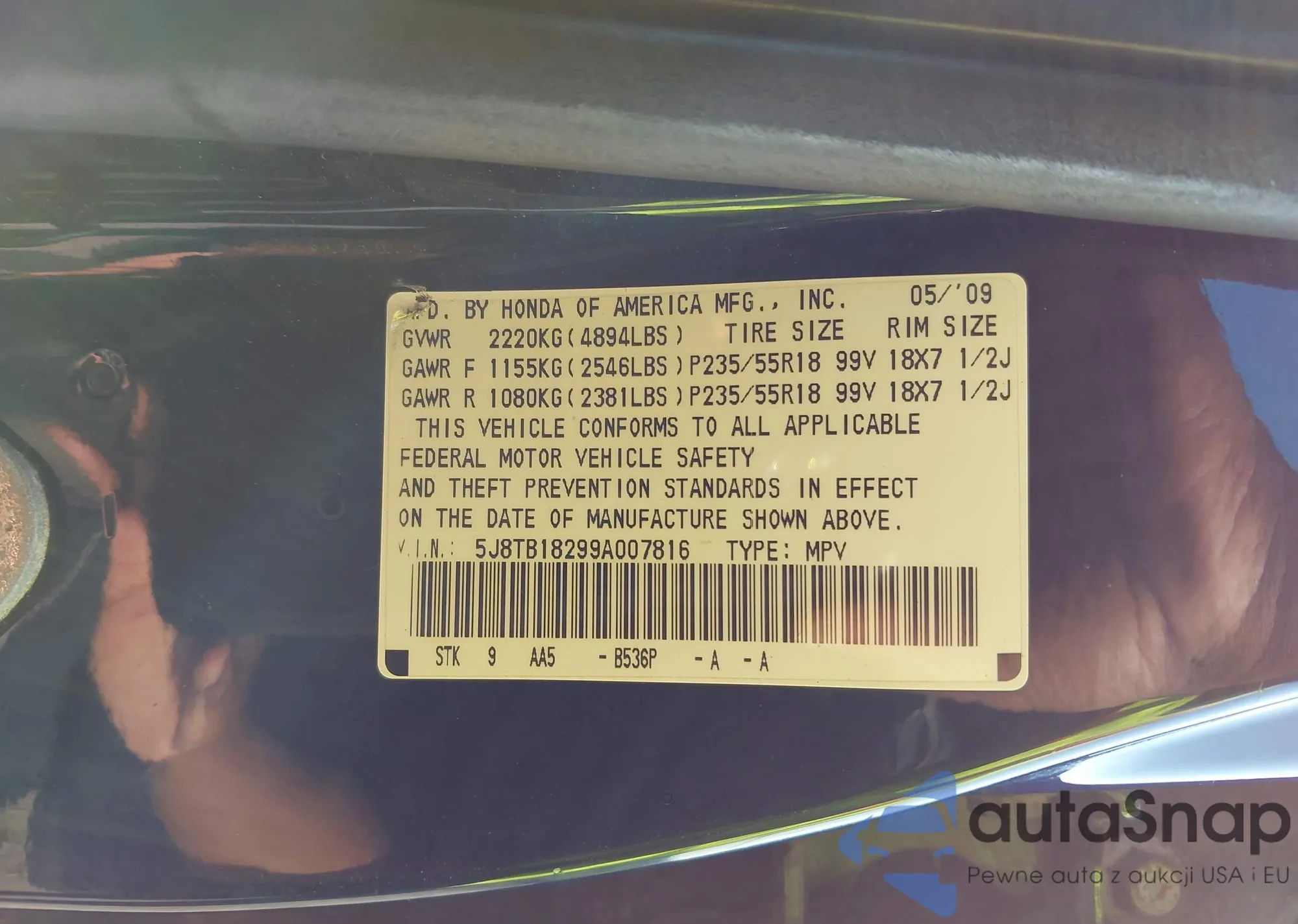 LOT: 42311817 VIN: 5J8TB18299A007816