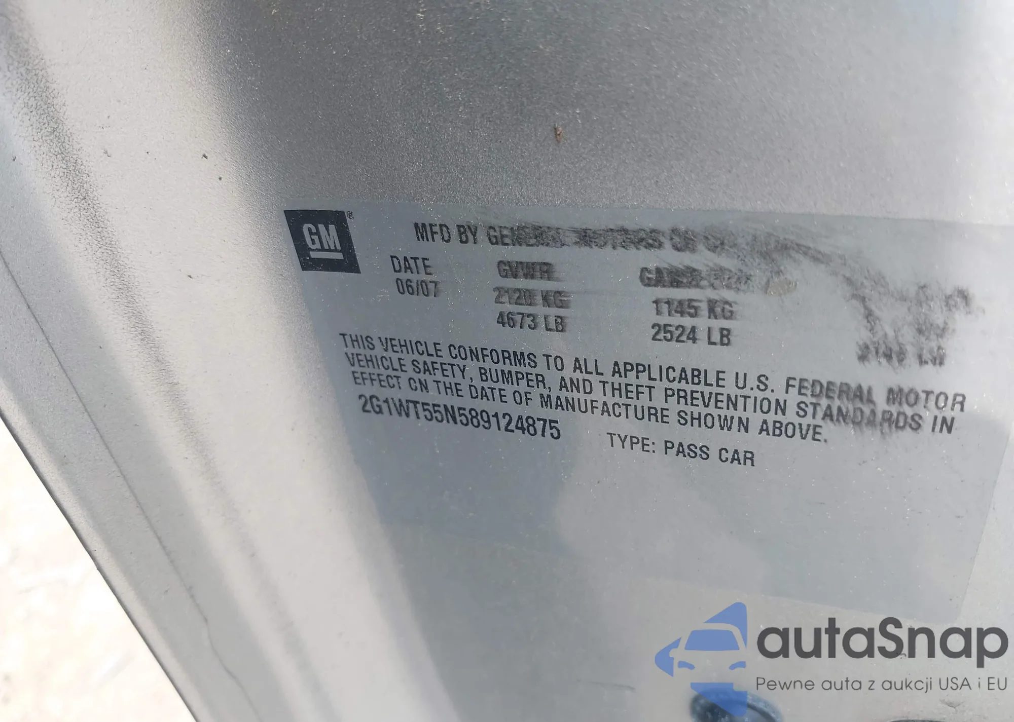 • VIN 2G1WT55N589124875