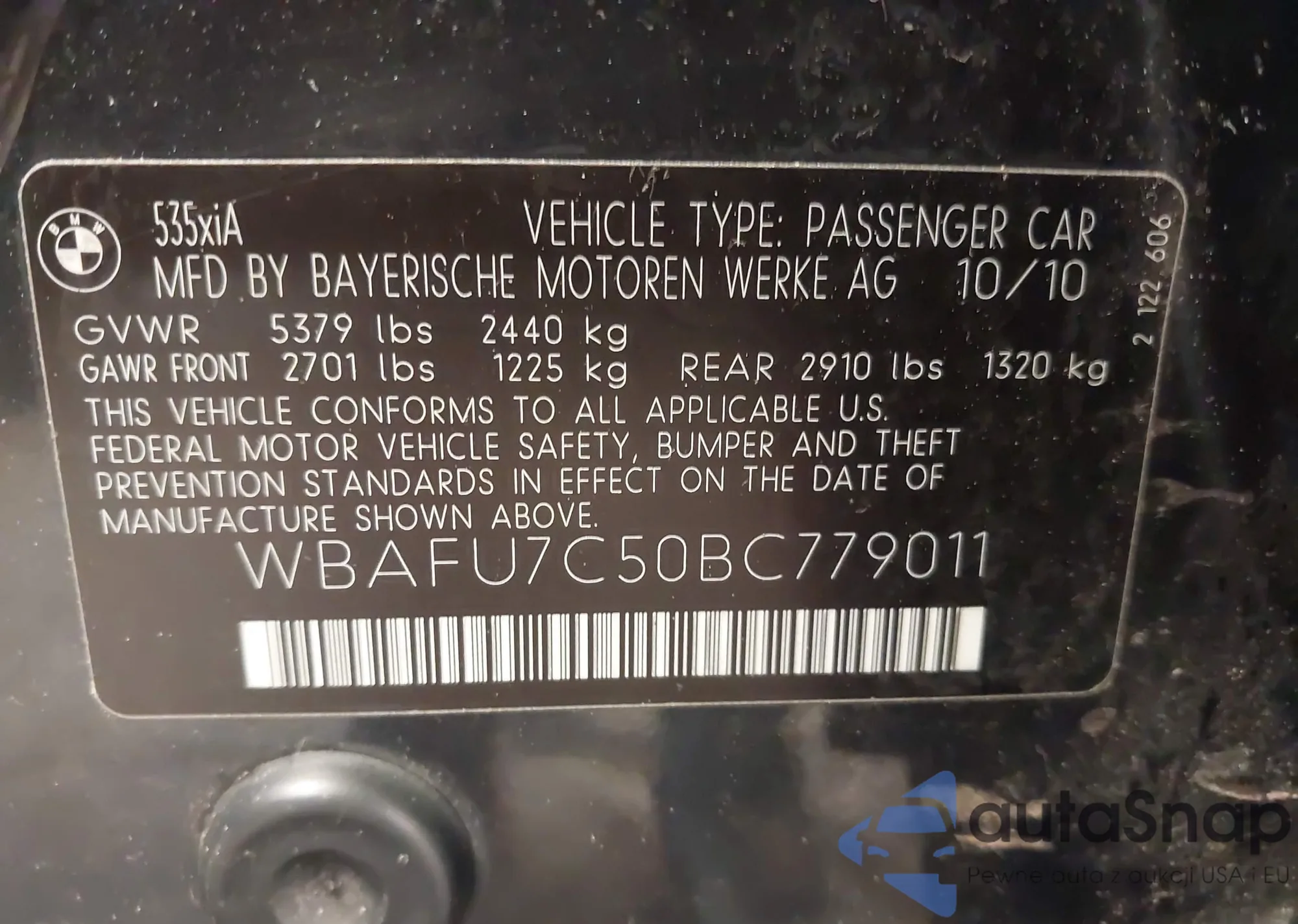 • VIN WBAFU7C50BC779011