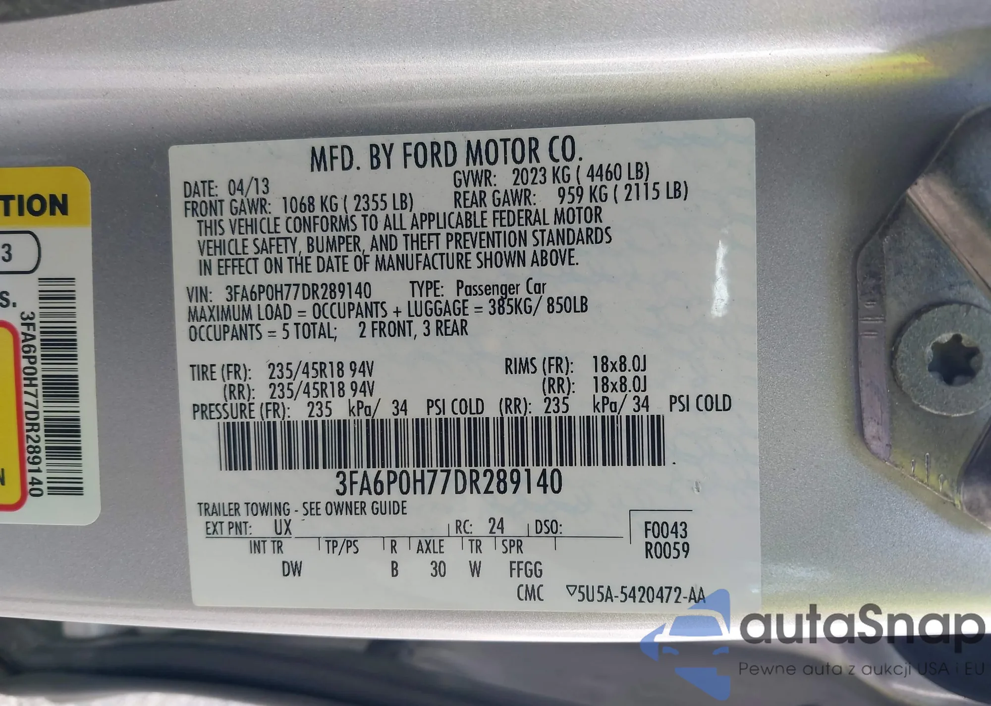 LOT: 42493306 VIN: 3FA6P0H77DR289140