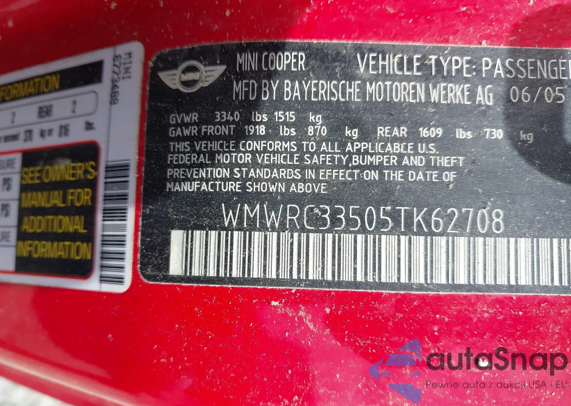 • VIN WMWRC33505TK62708