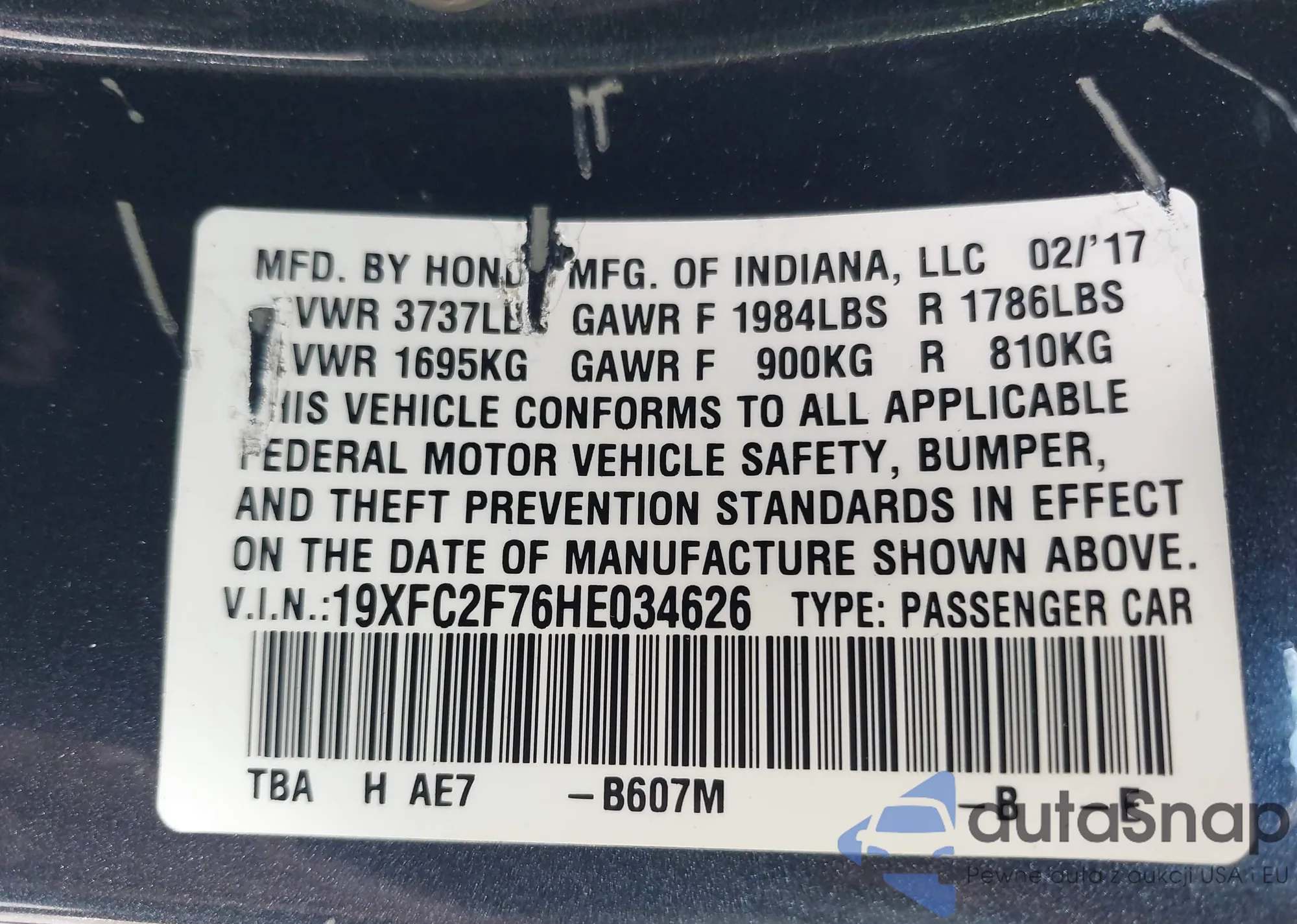 • VIN 19XFC2F76HE034626