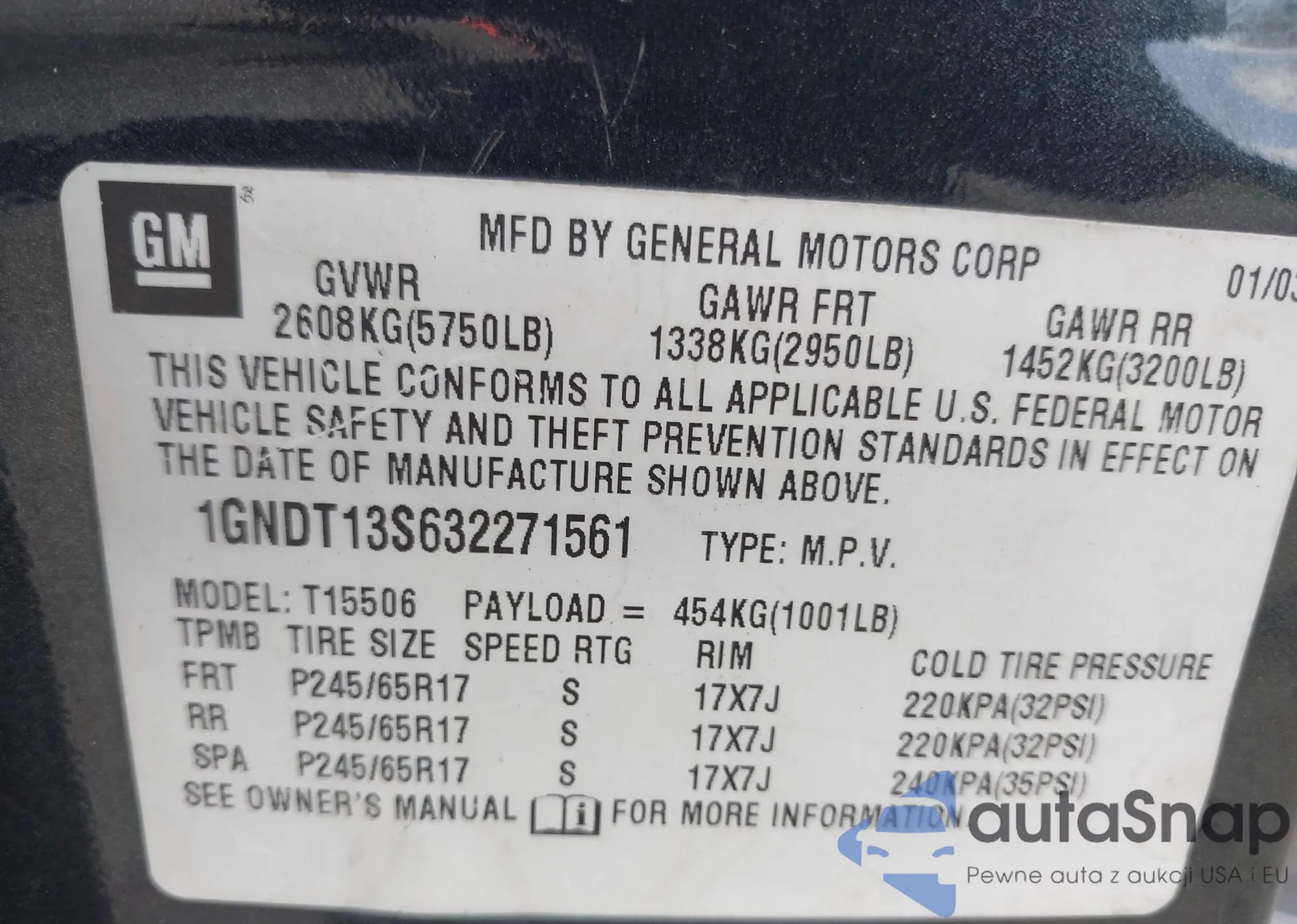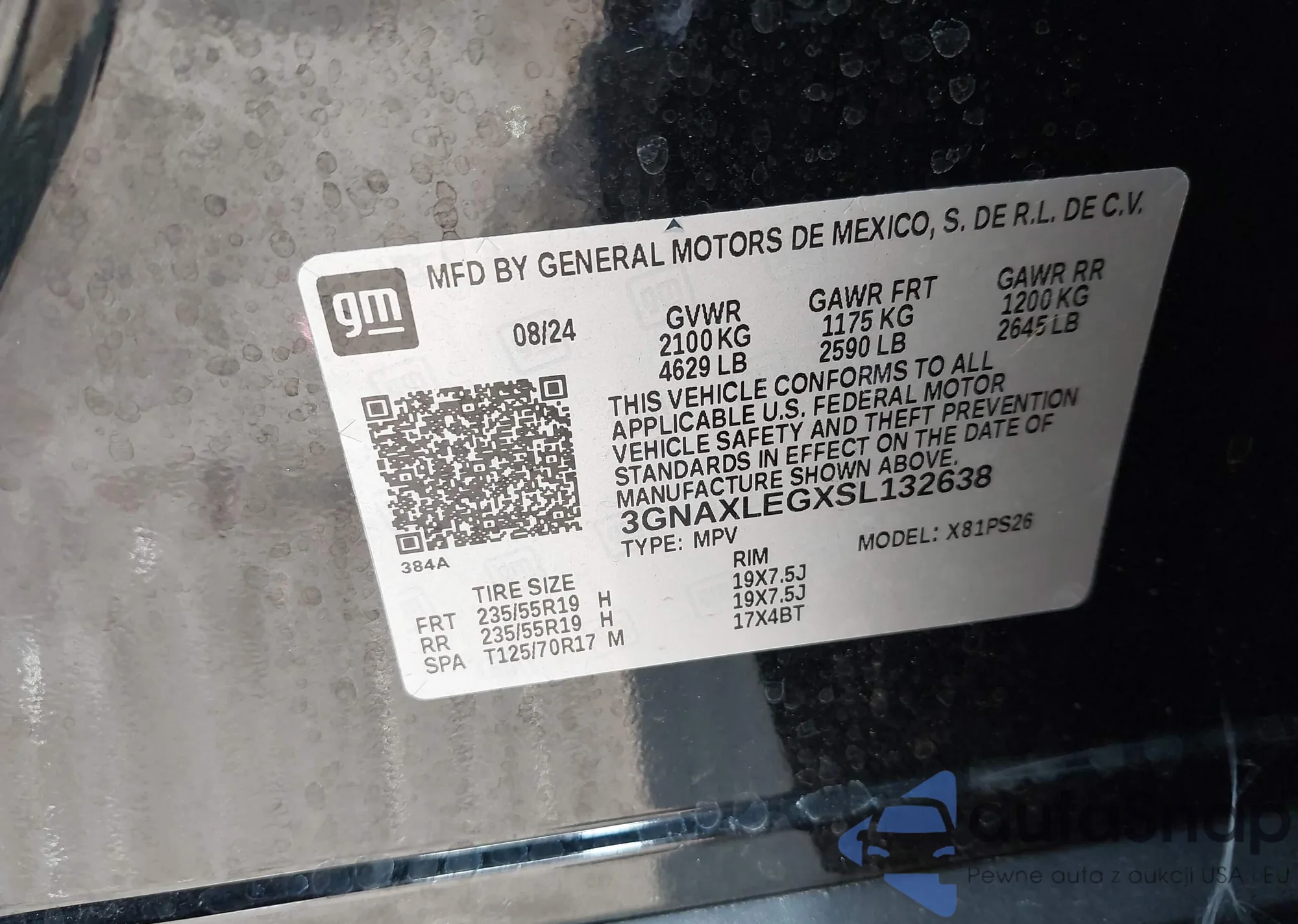 • VIN 3GNAXLEGXSL132638