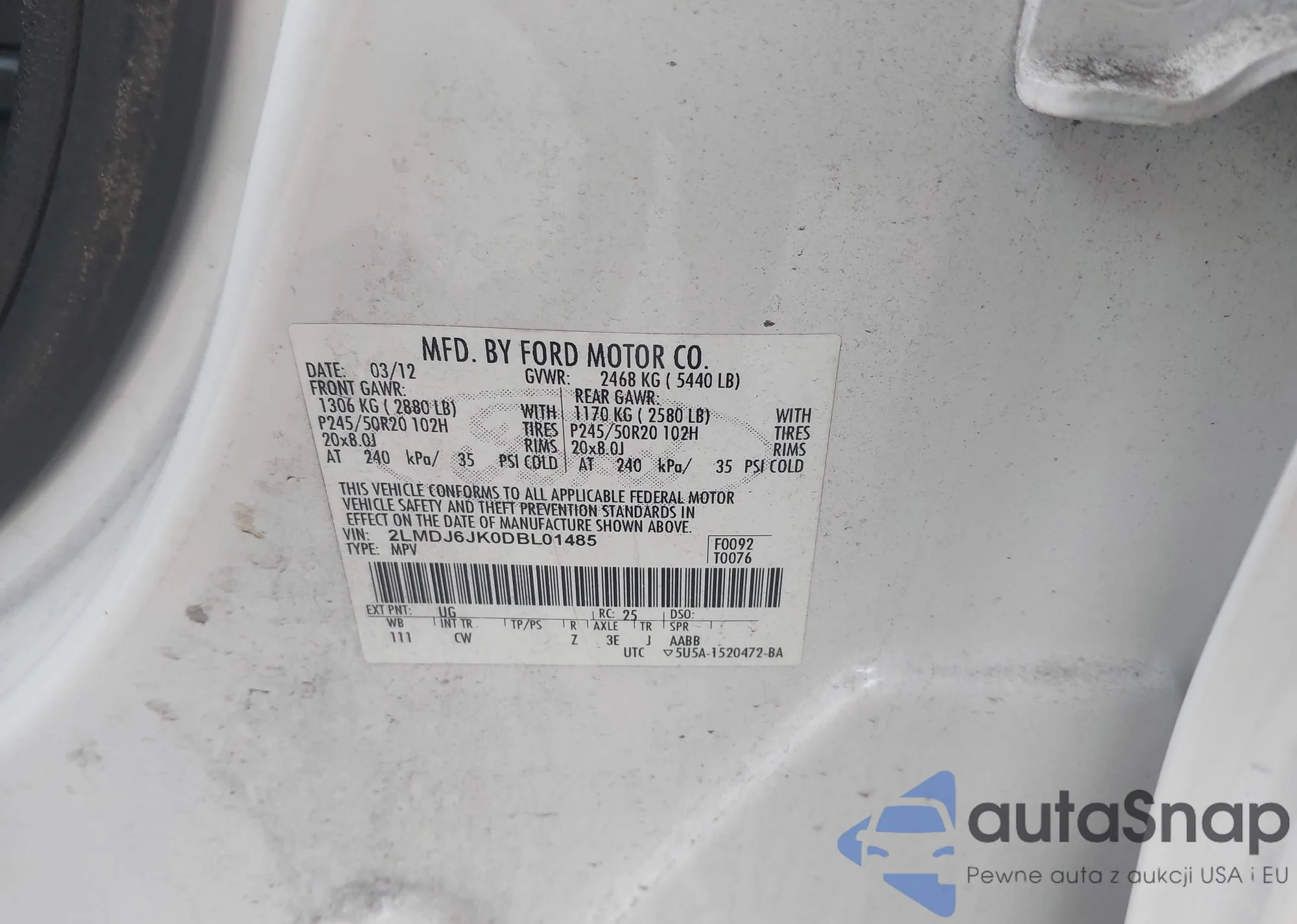 LOT: 42399089 VIN: 2LMDJ6JK0DBL01485