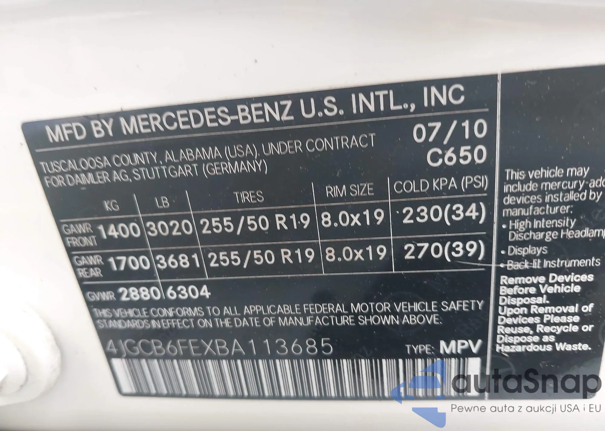 • VIN 1FMEU7EEXAUA73602