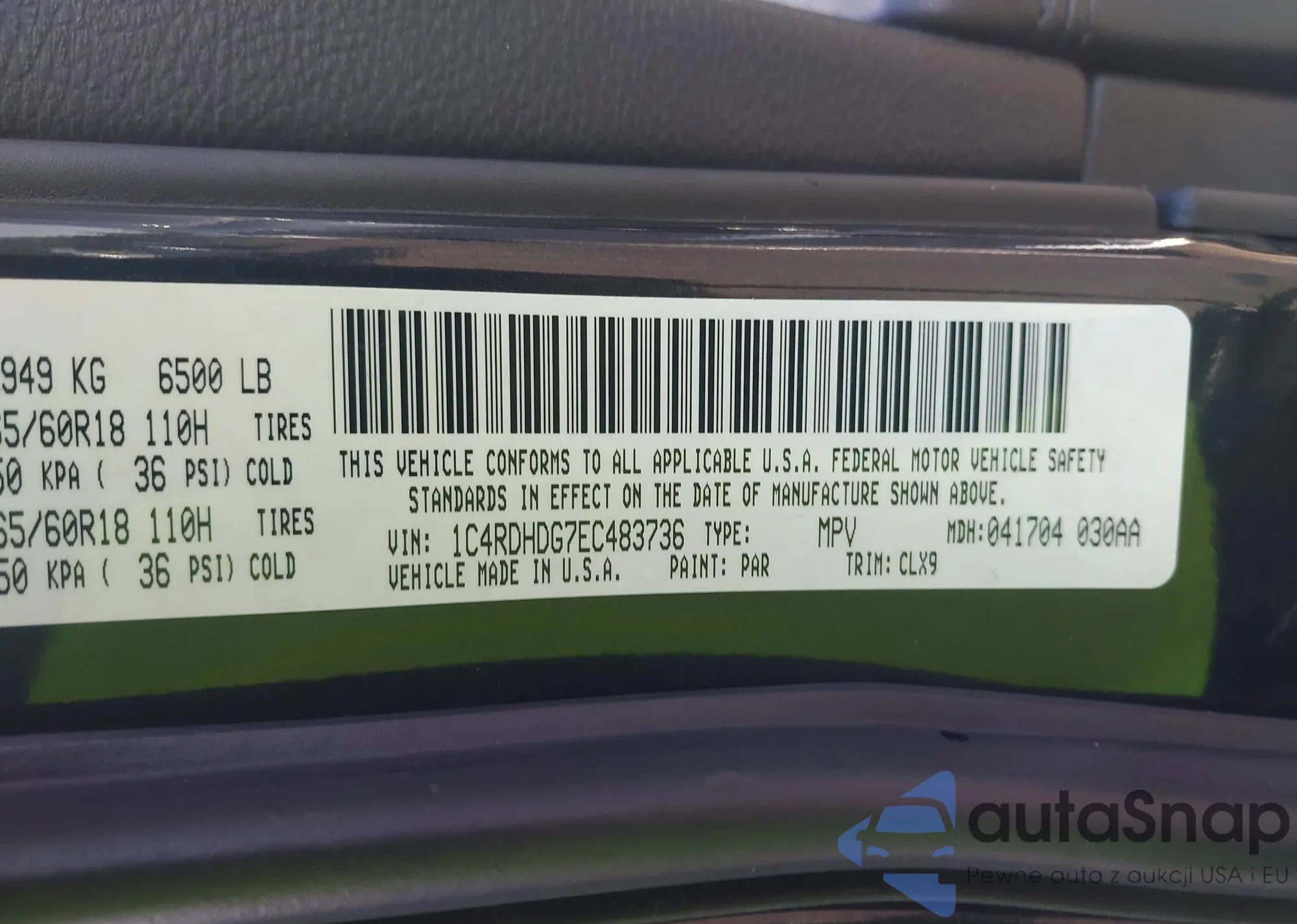 LOT: 42469233 VIN: 1C4RDHDG7EC483736