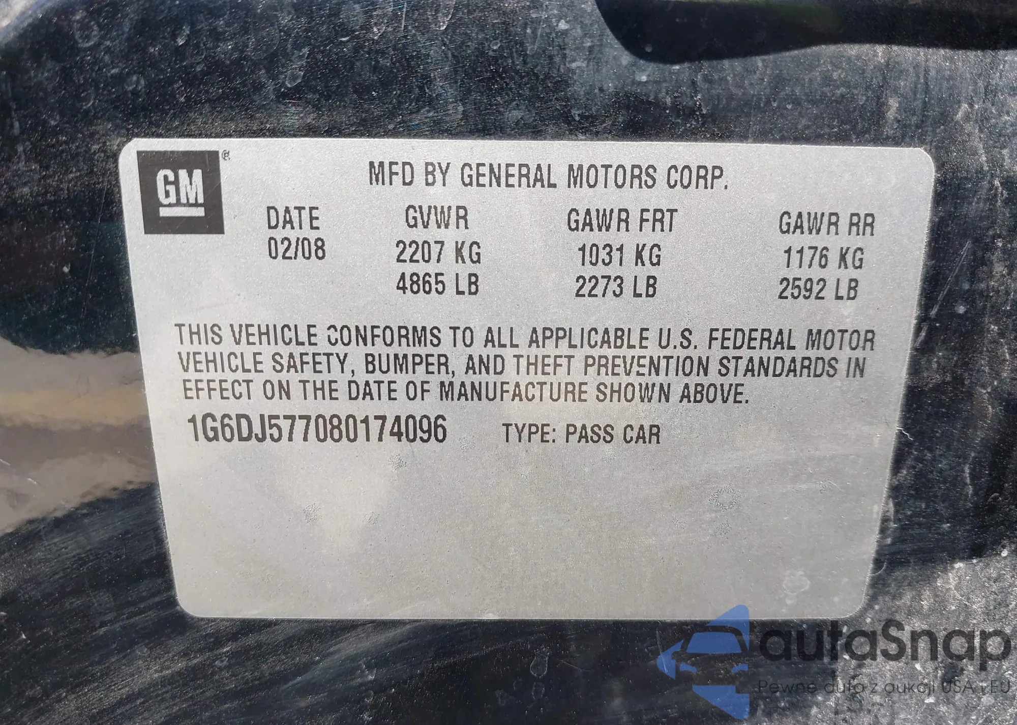 • VIN 1G6DJ577080174096