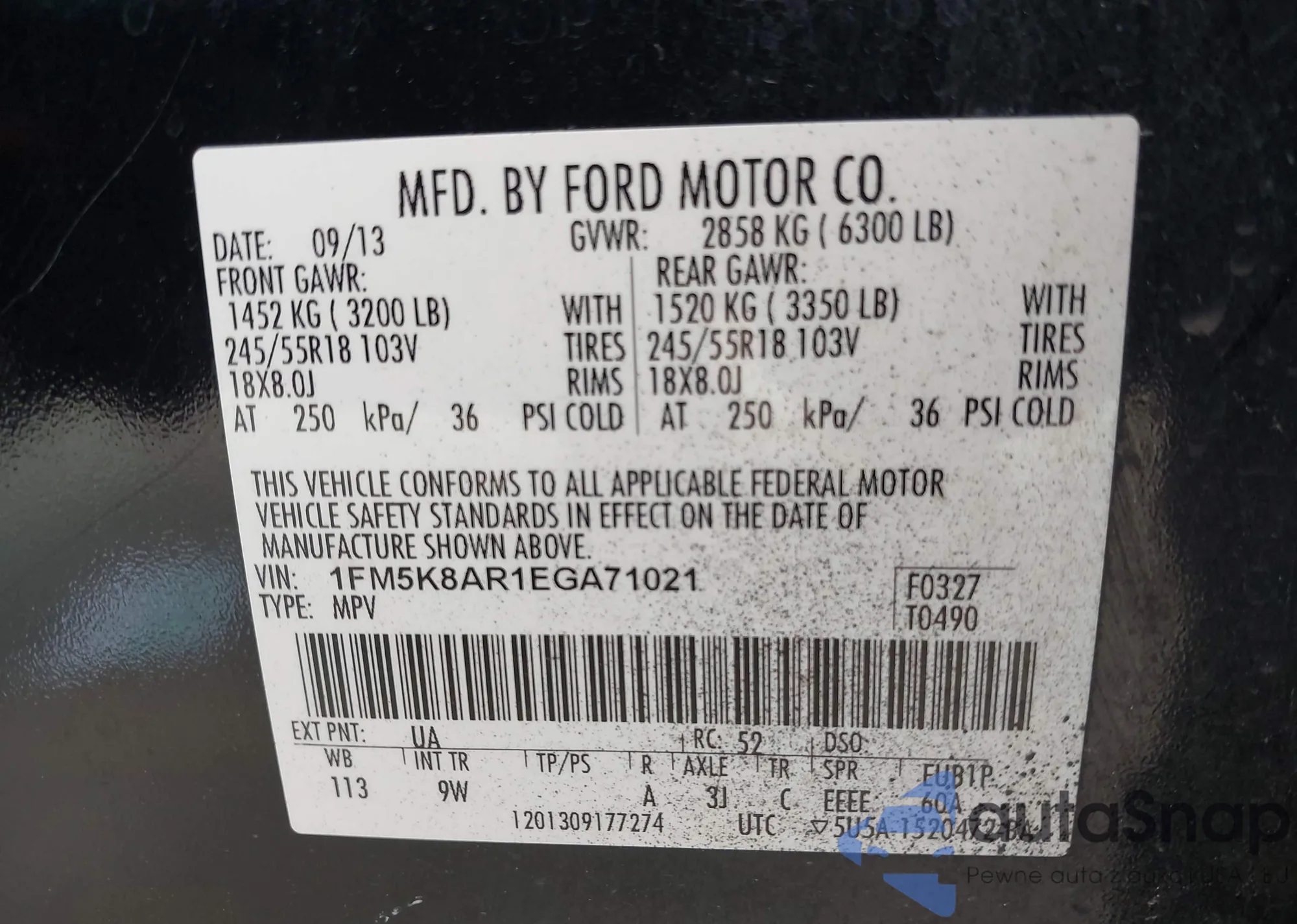 • VIN 1FM5K8AR1EGA71021