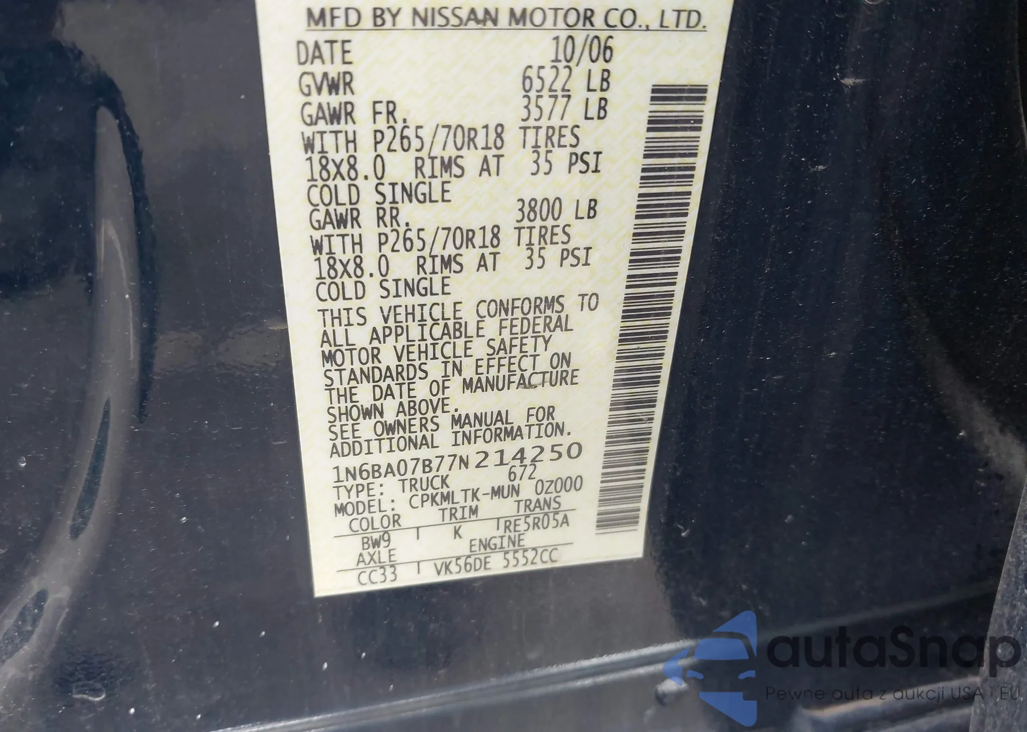 • VIN 1N6BA07B77N214250