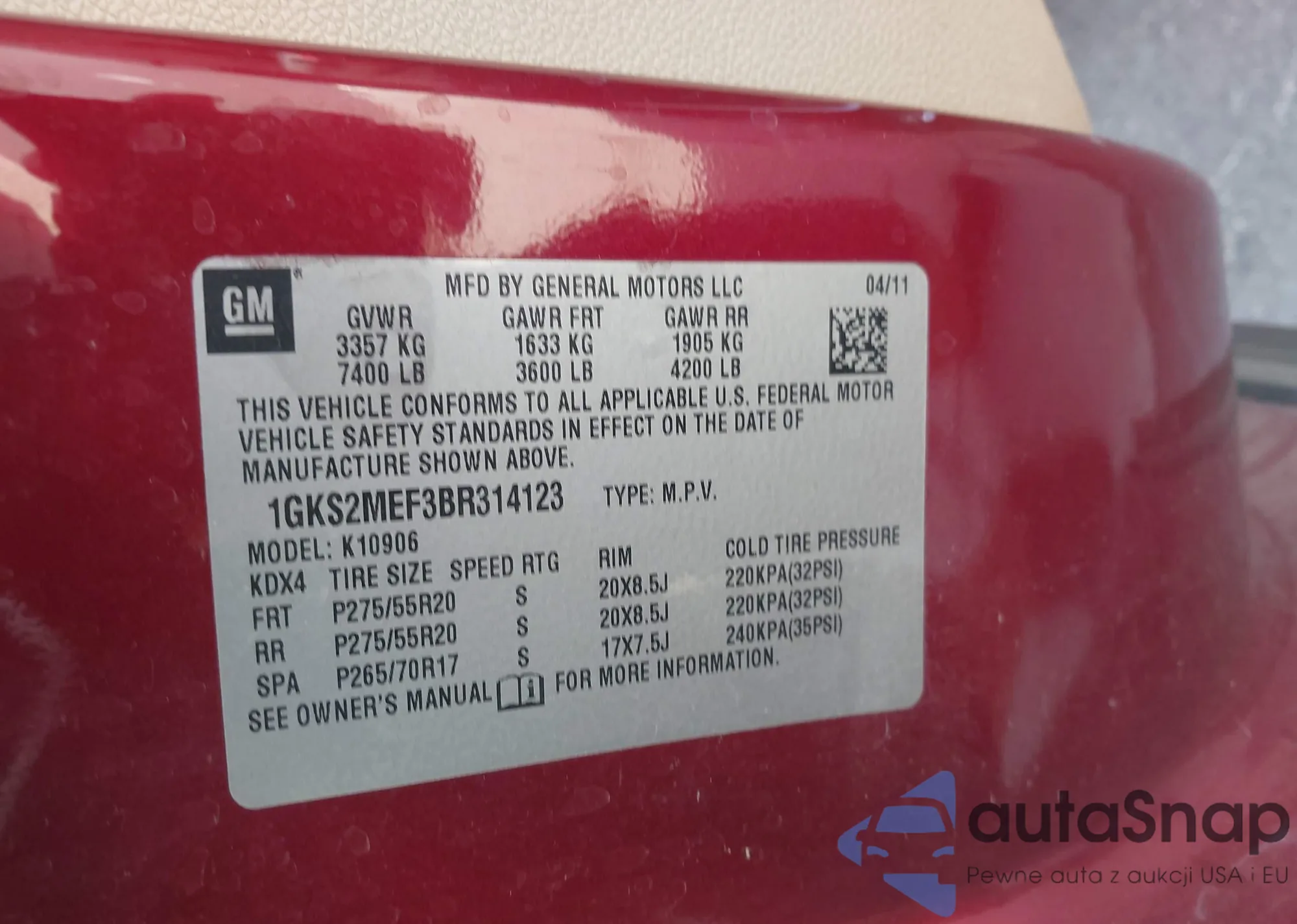 LOT: 42264065 VIN: 2G11Z5S36K9113998