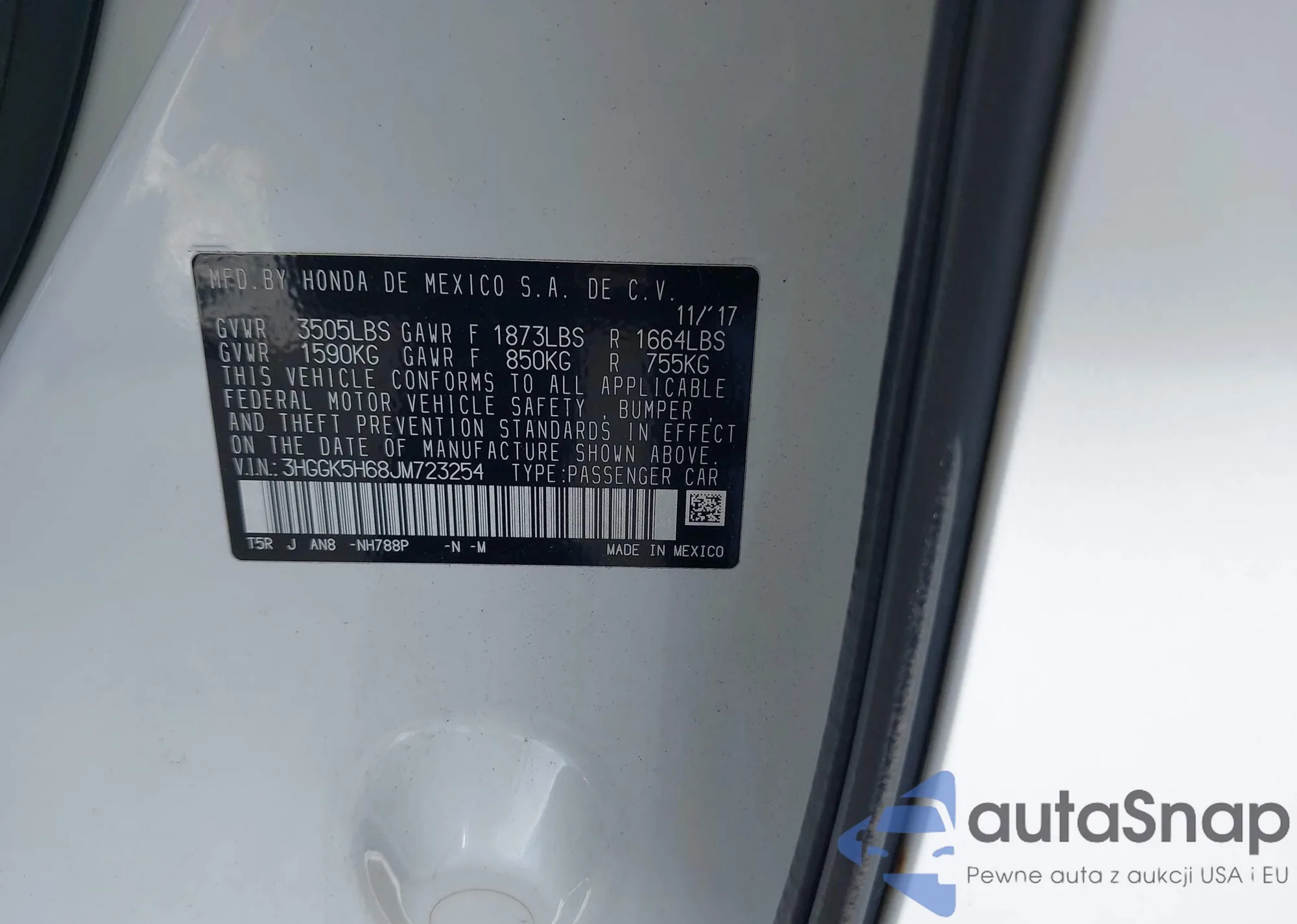 LOT: 41815956 VIN: 19XFB2F58EE007747