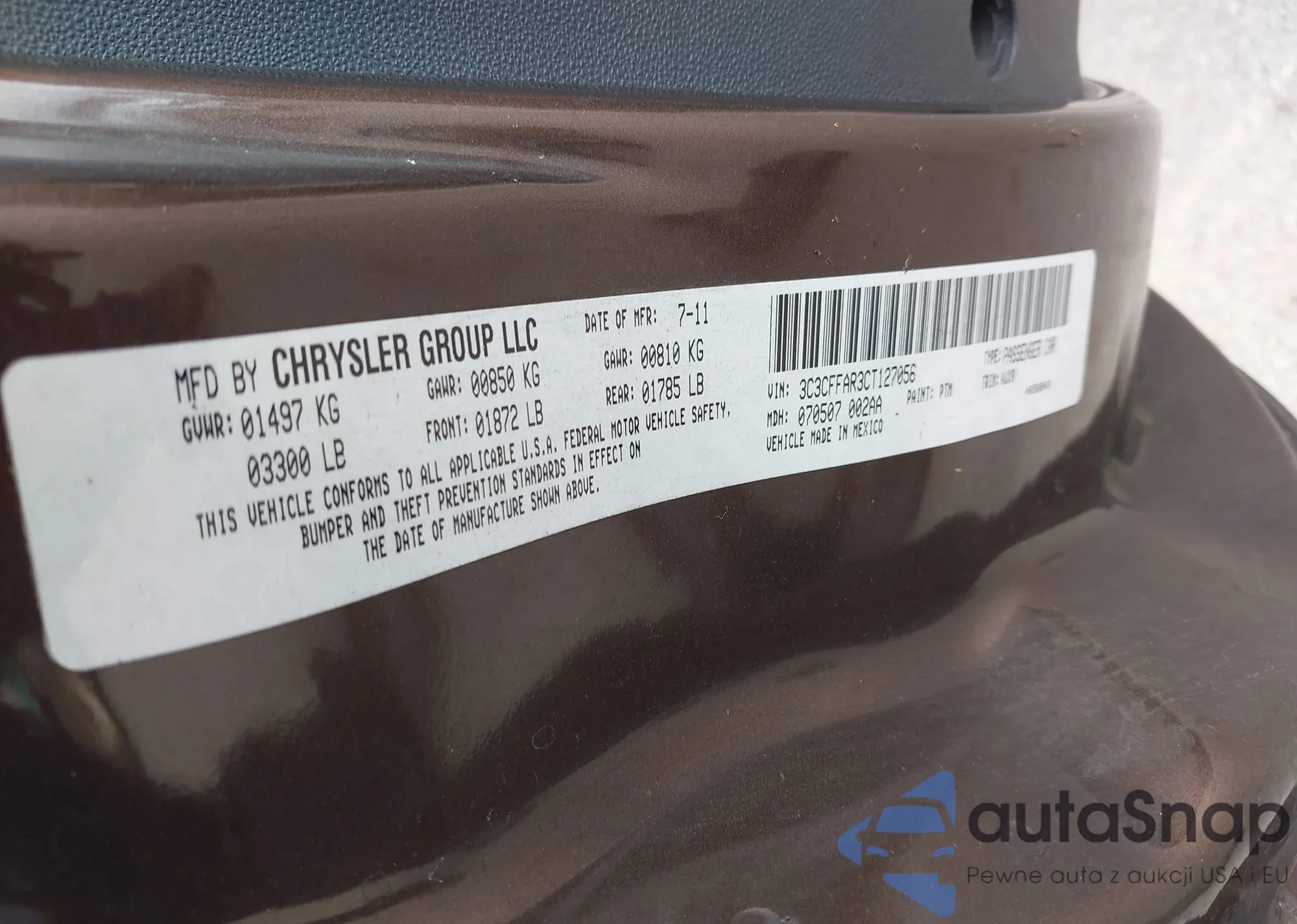 LOT: 42127436 VIN: 3C3CFFAR3CT127056