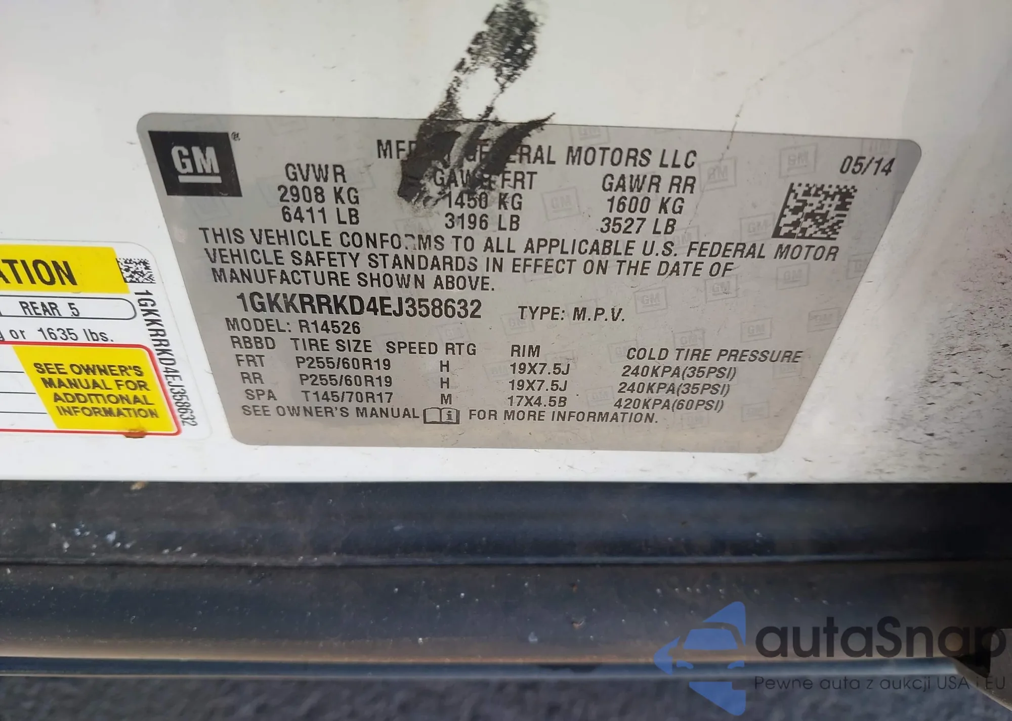 LOT: 42327817 VIN: 1GKKRRKD4EJ358632