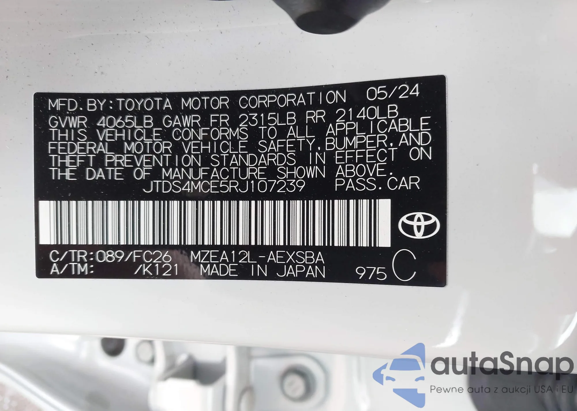 LOT: 42035084 VIN: JTDS4MCE5RJ107239