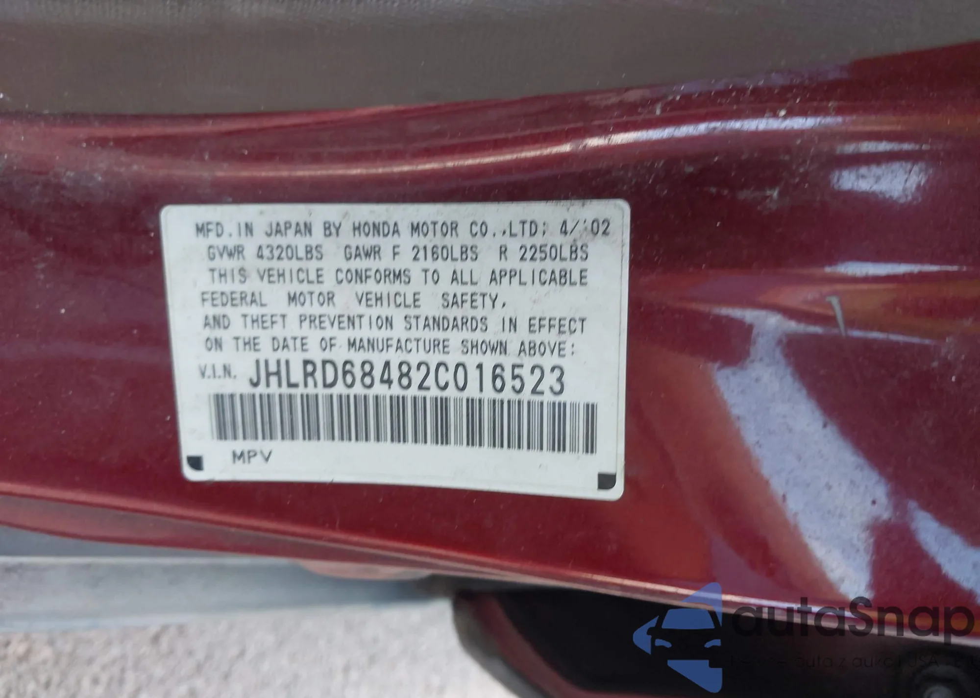 • VIN 5J8TC1H55ML018431