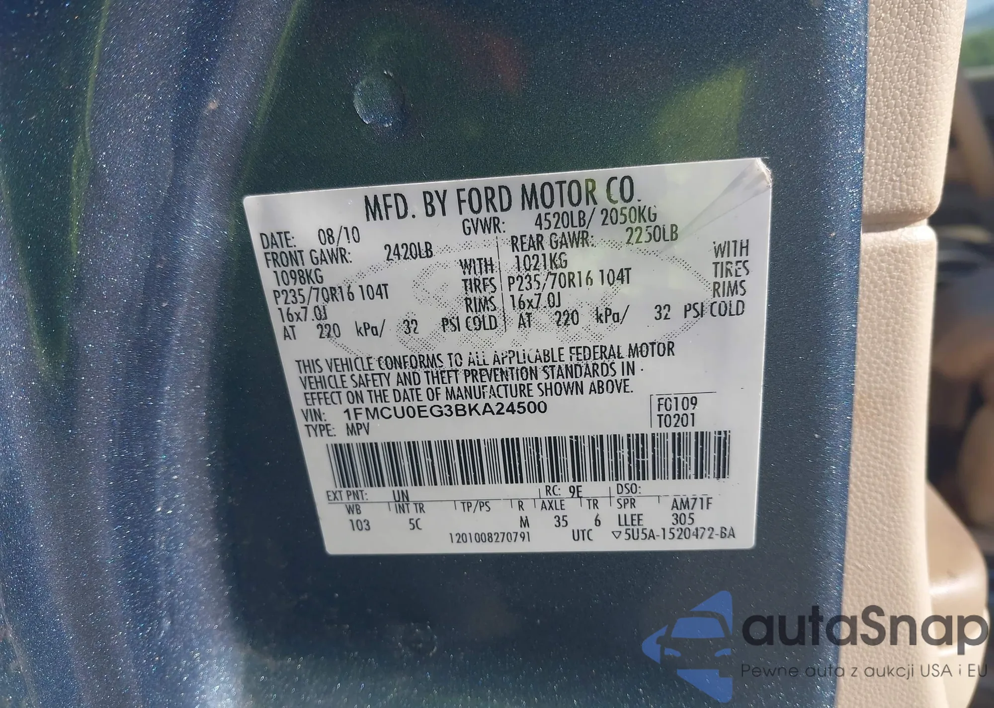 • VIN 1FMCU0EG3BKA24500