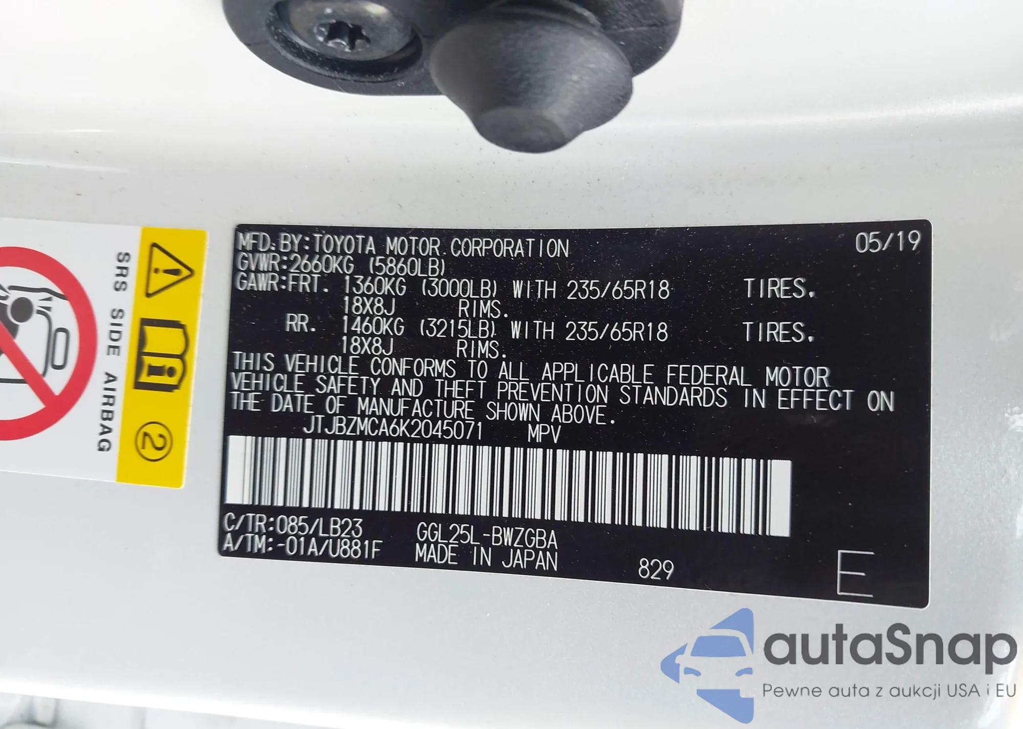 • VIN JTJBZMCA6K2045071