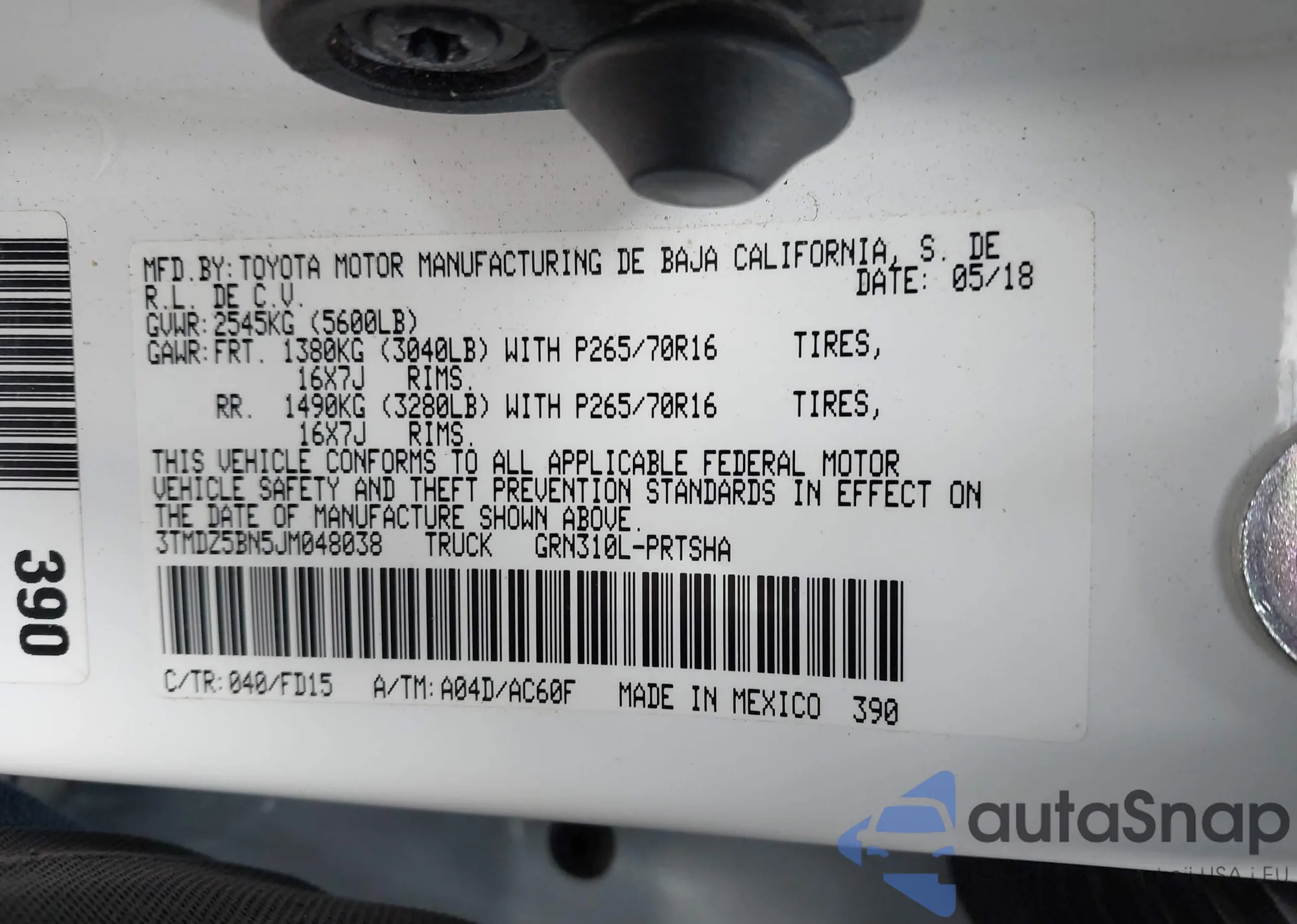 • VIN 3TMDZ5BN5JM048038