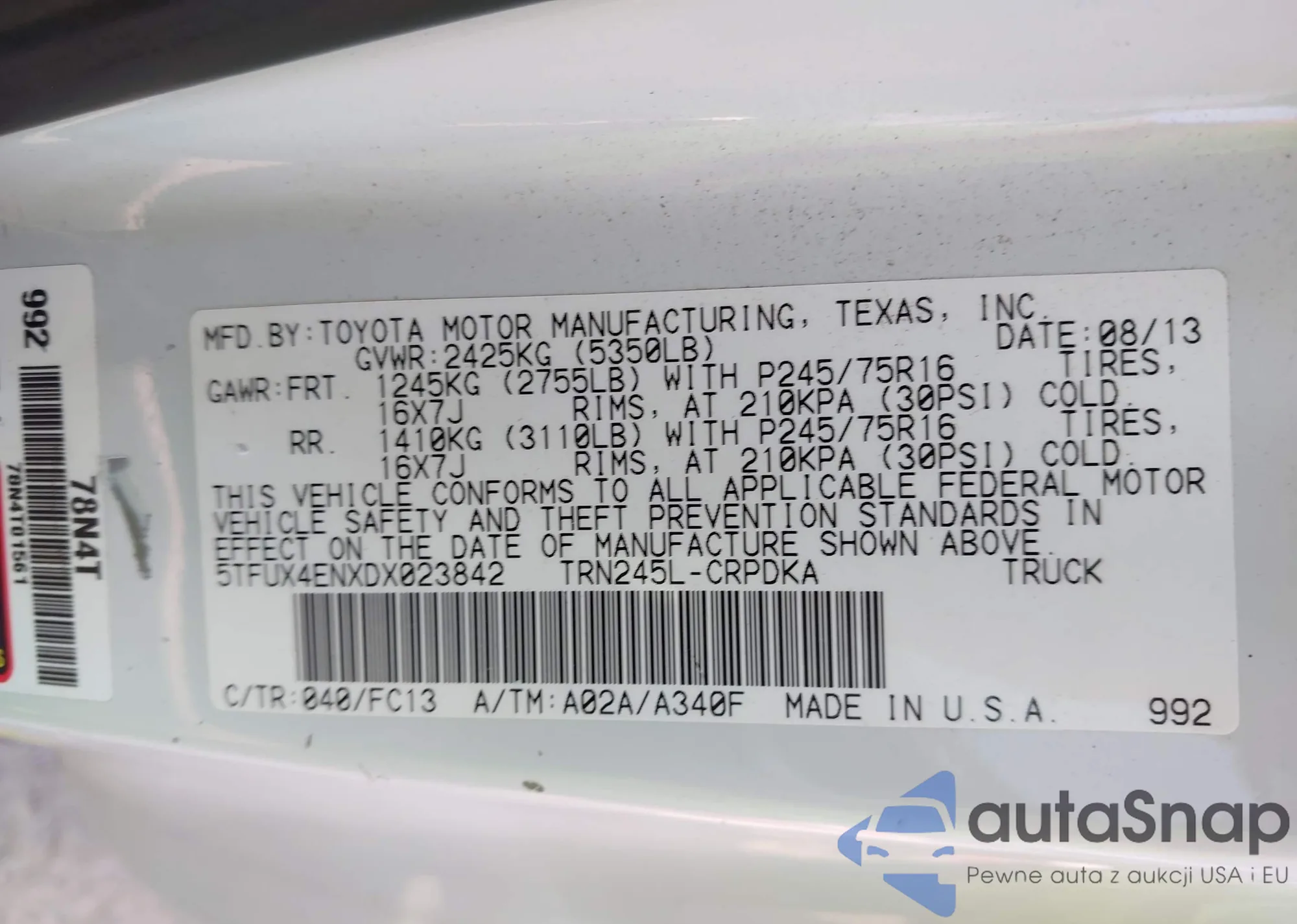 • VIN 5TFPX4EN9CX007644