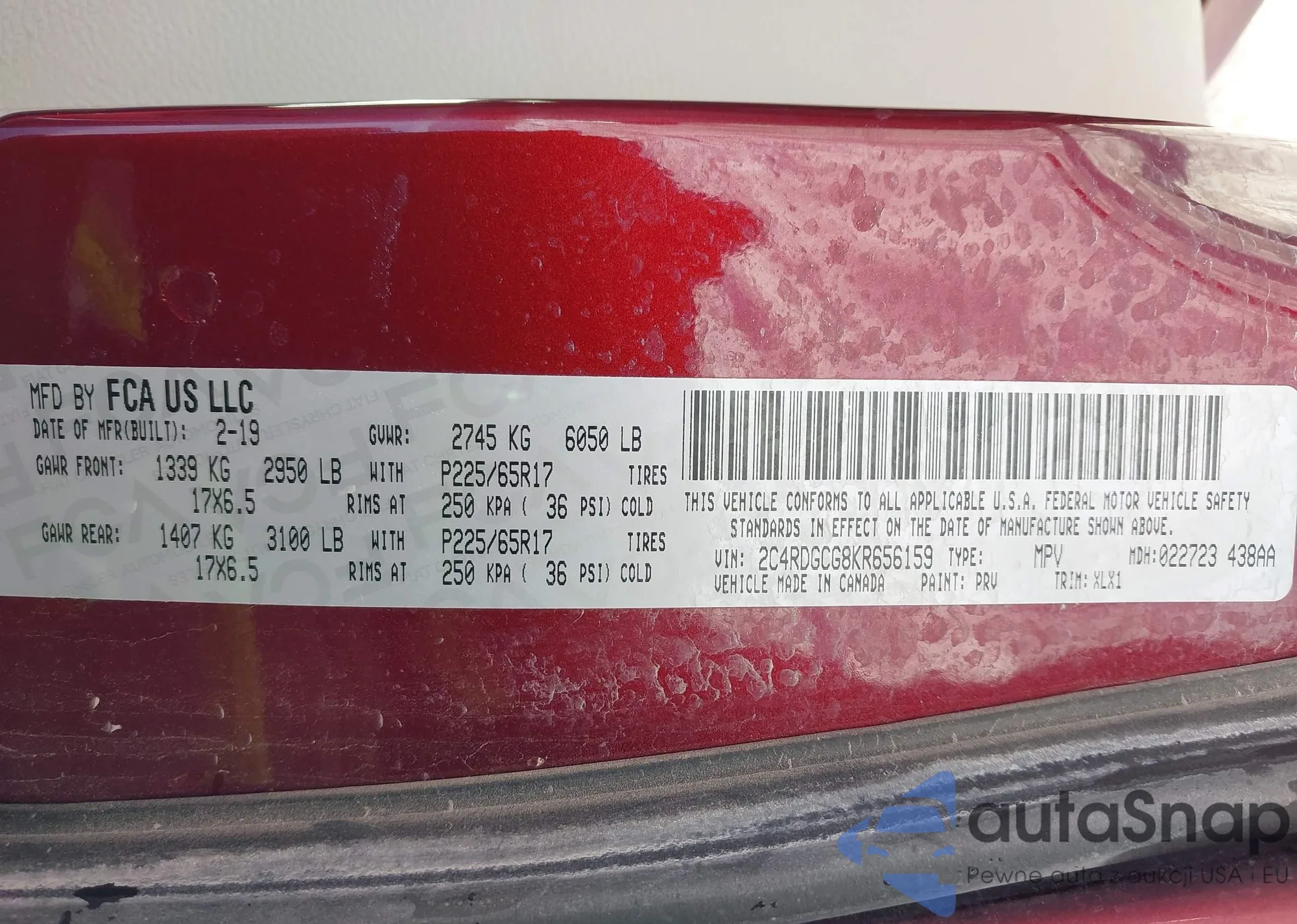 • VIN 5J6RW2H83KA021203