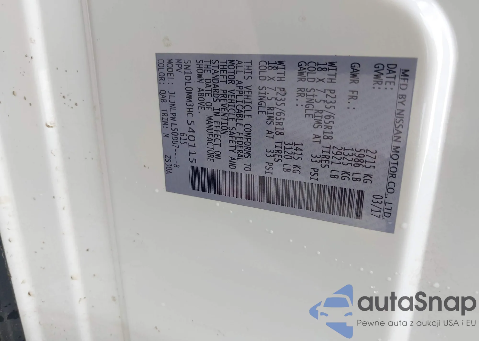 LOT: 41696533 VIN: JN1CV6AR4BM411950