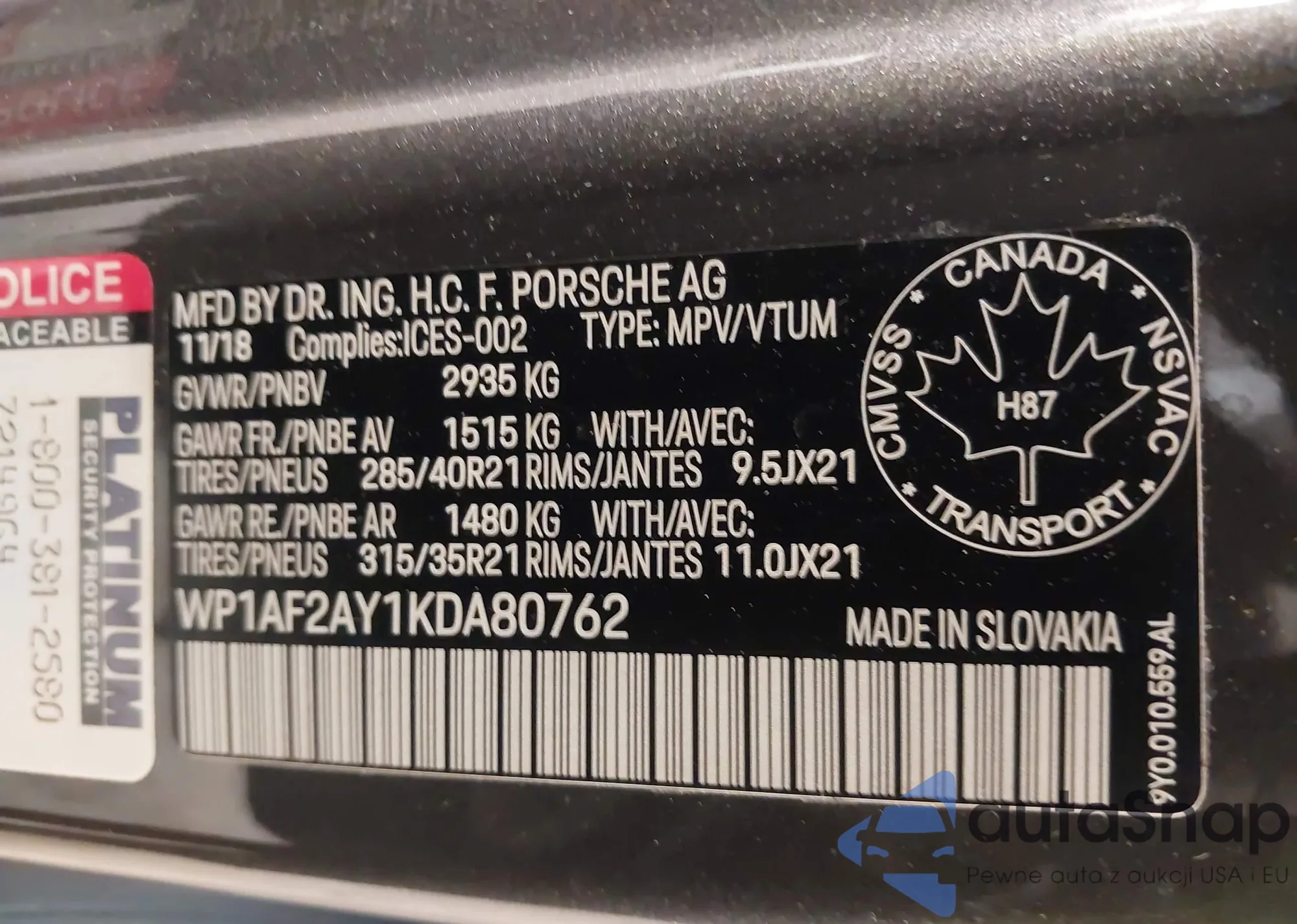 • VIN WP1AF2AY1KDA80762