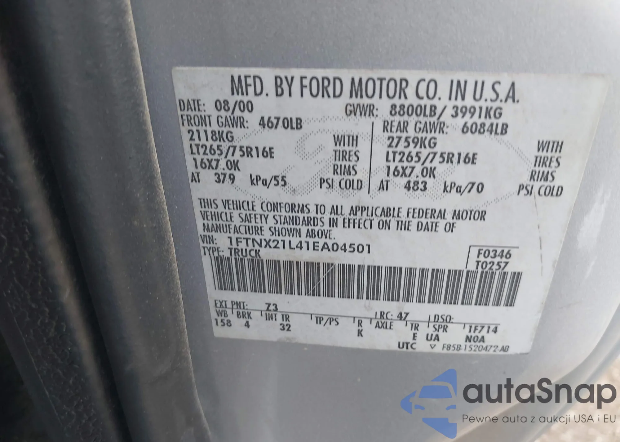 • VIN 1FTNX21L41EA04501