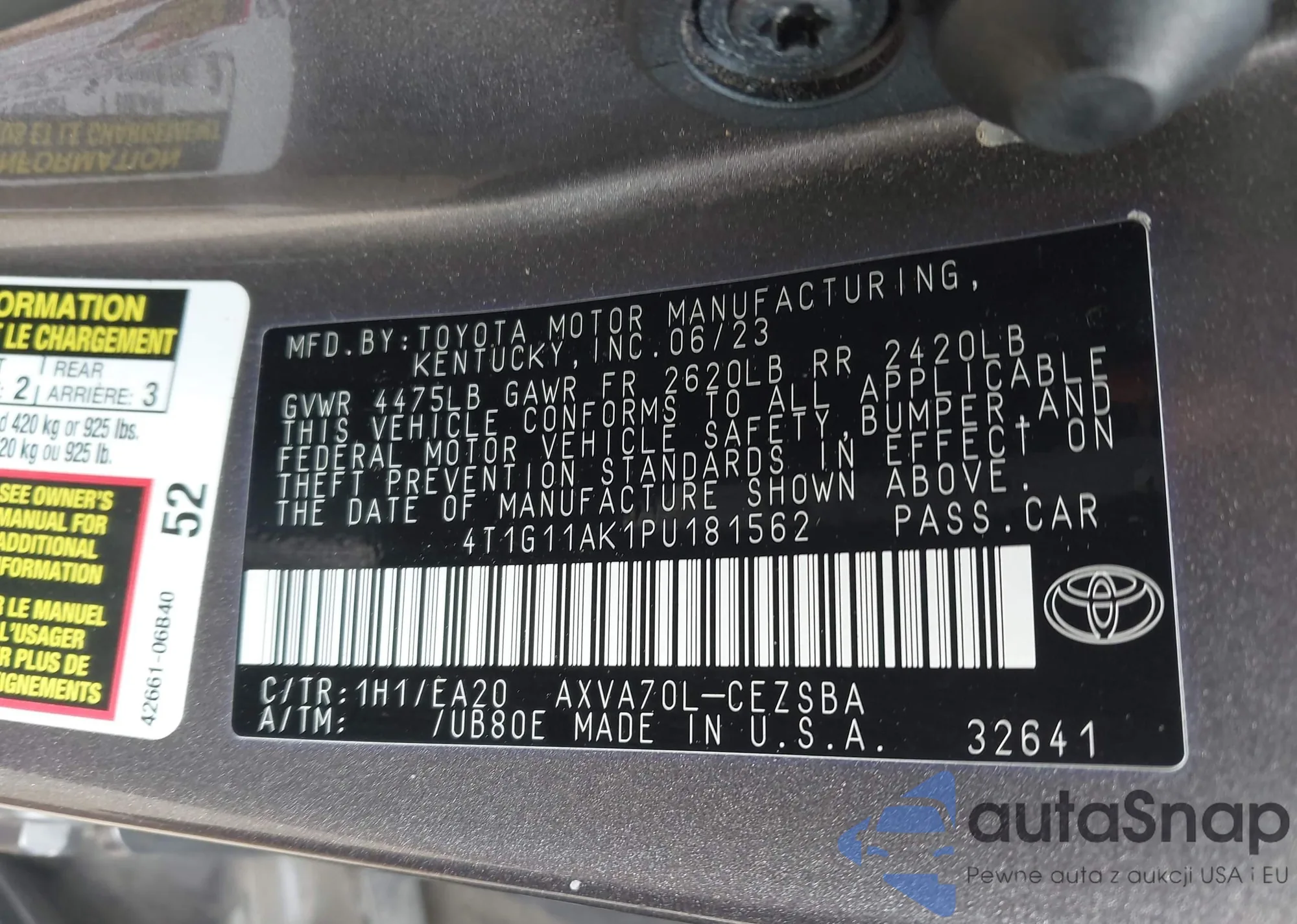 LOT: 42544444 VIN: 4T1G11AK1PU181562