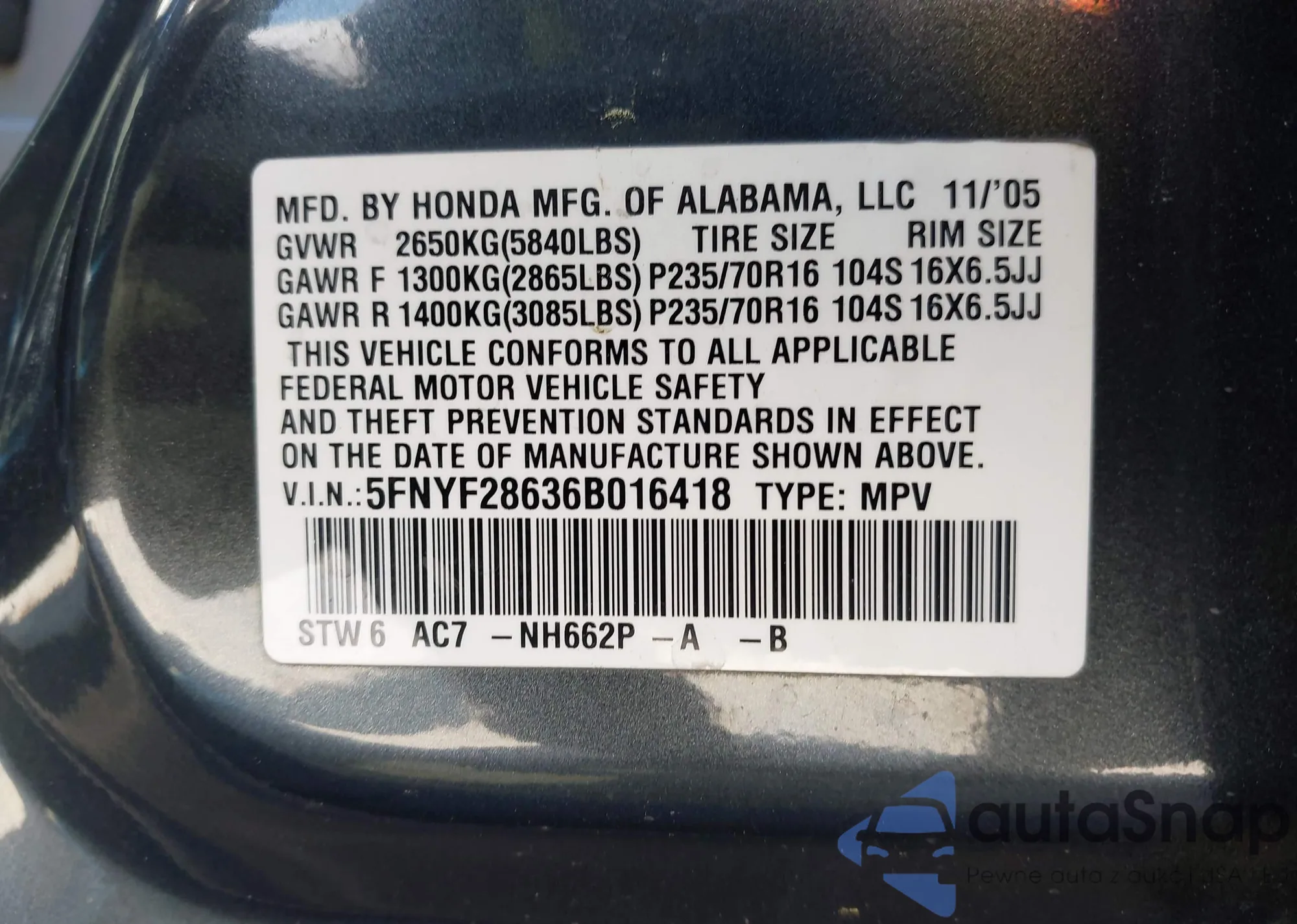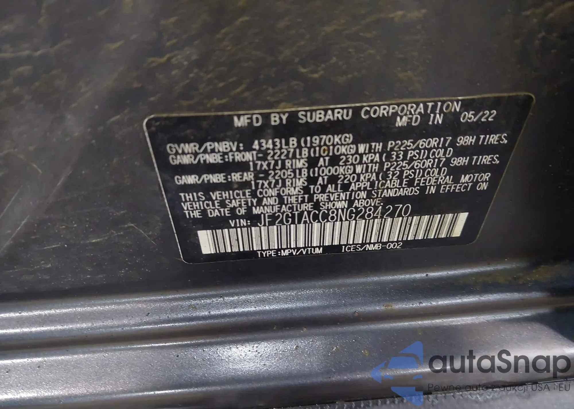 • VIN JF2GTACC8NG284270