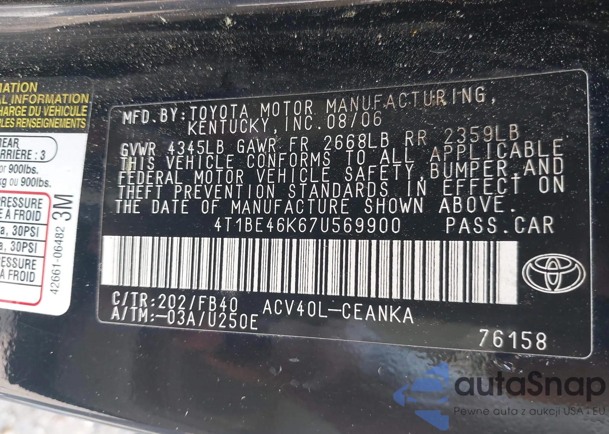 • VIN 4T1BF3EK4AU554067