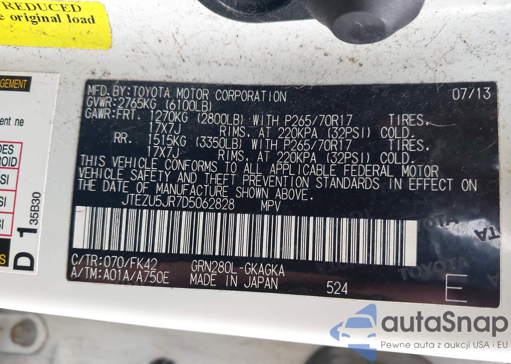 LOT: 42254596 VIN: 4T1BE46K67U569900