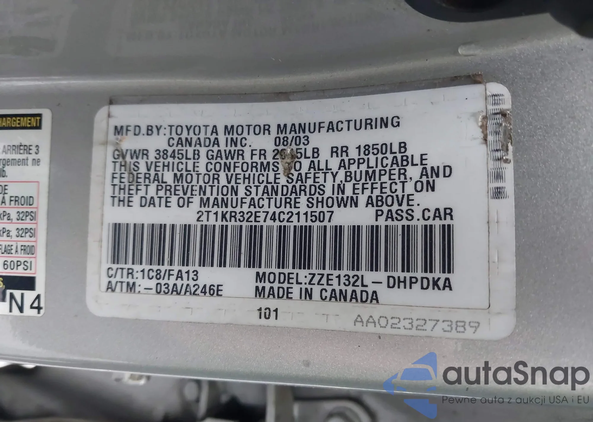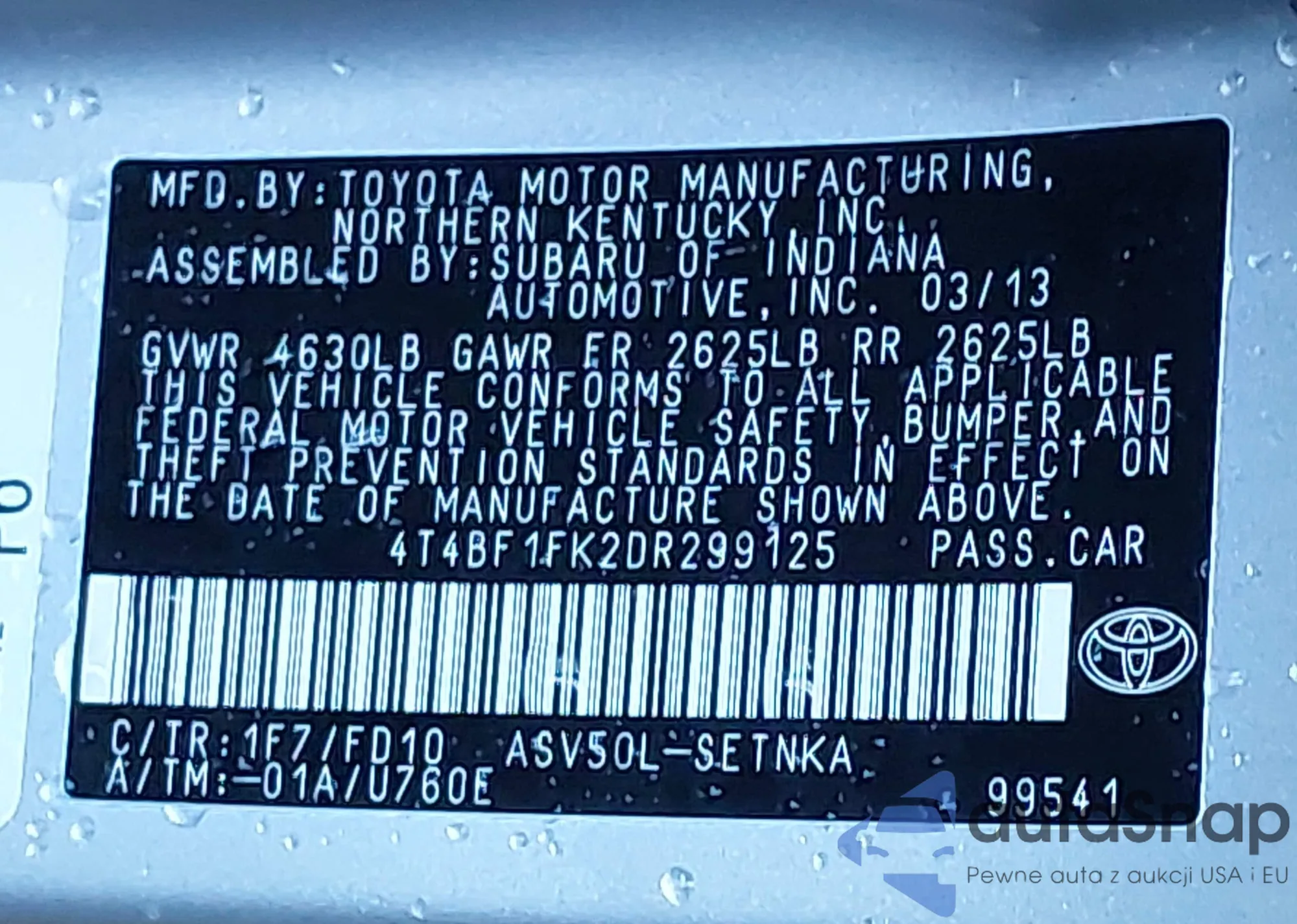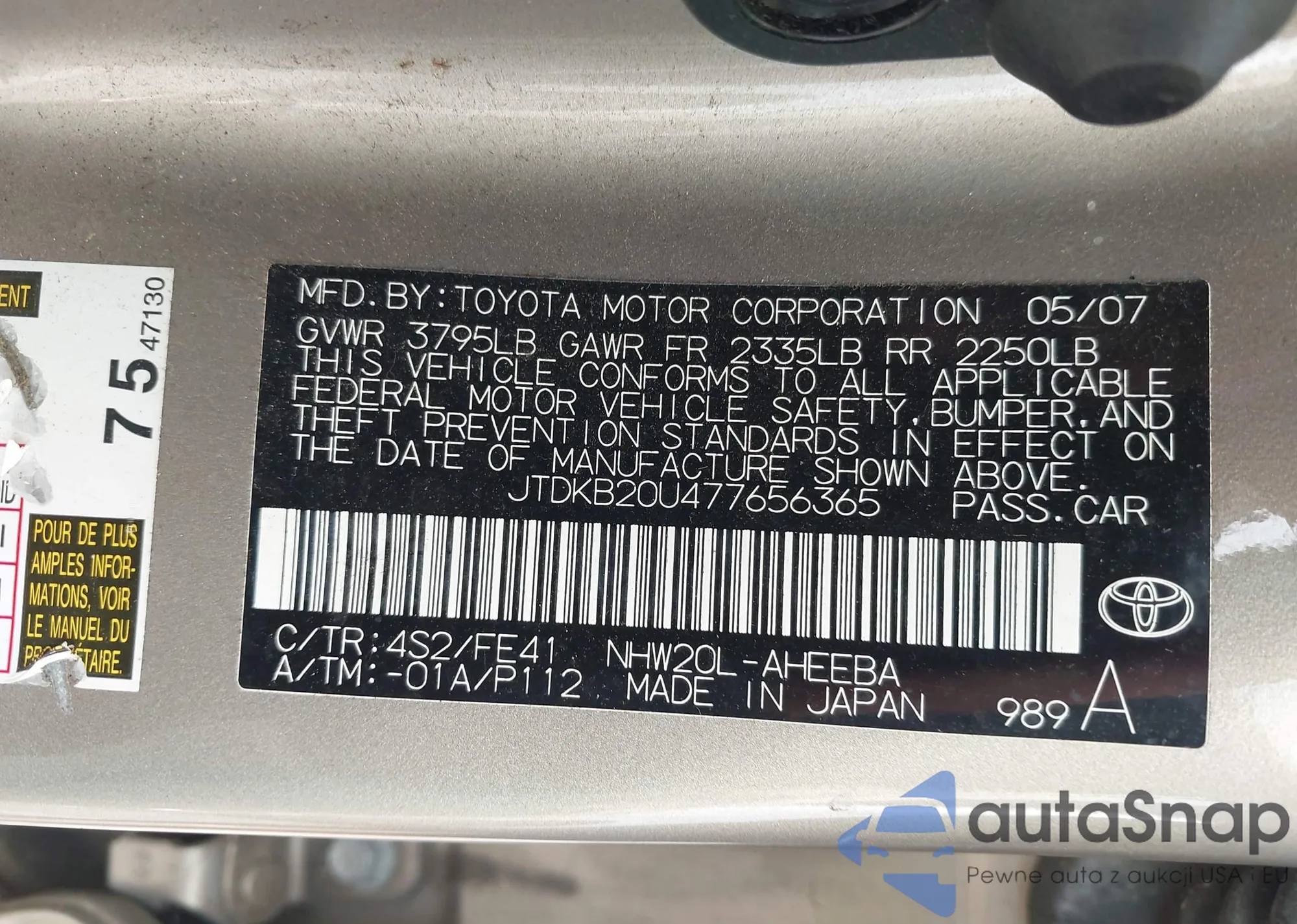 LOT: 42485027 VIN: JTDKB20U477656365