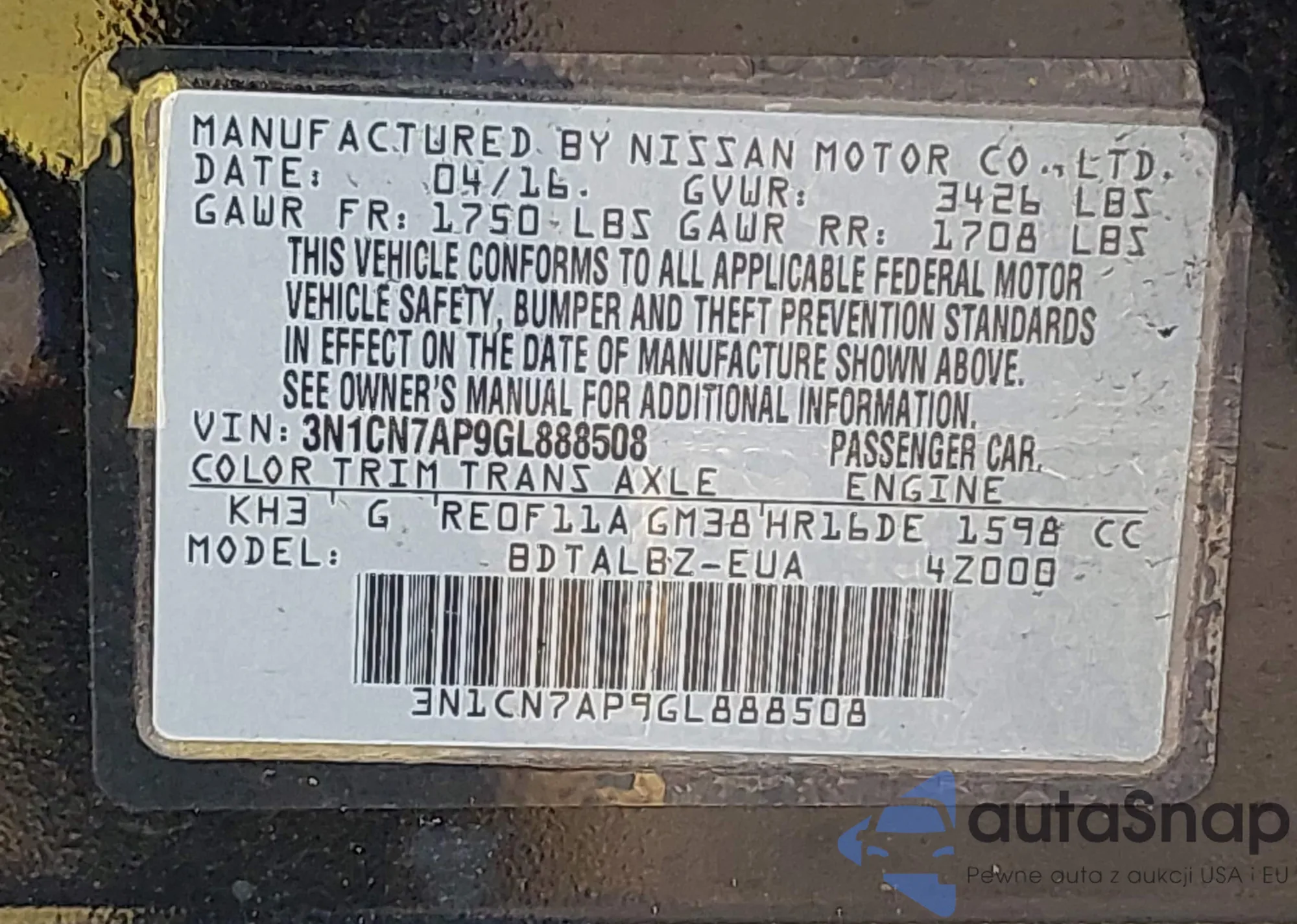 • VIN 3N1BC1CP6CK814264