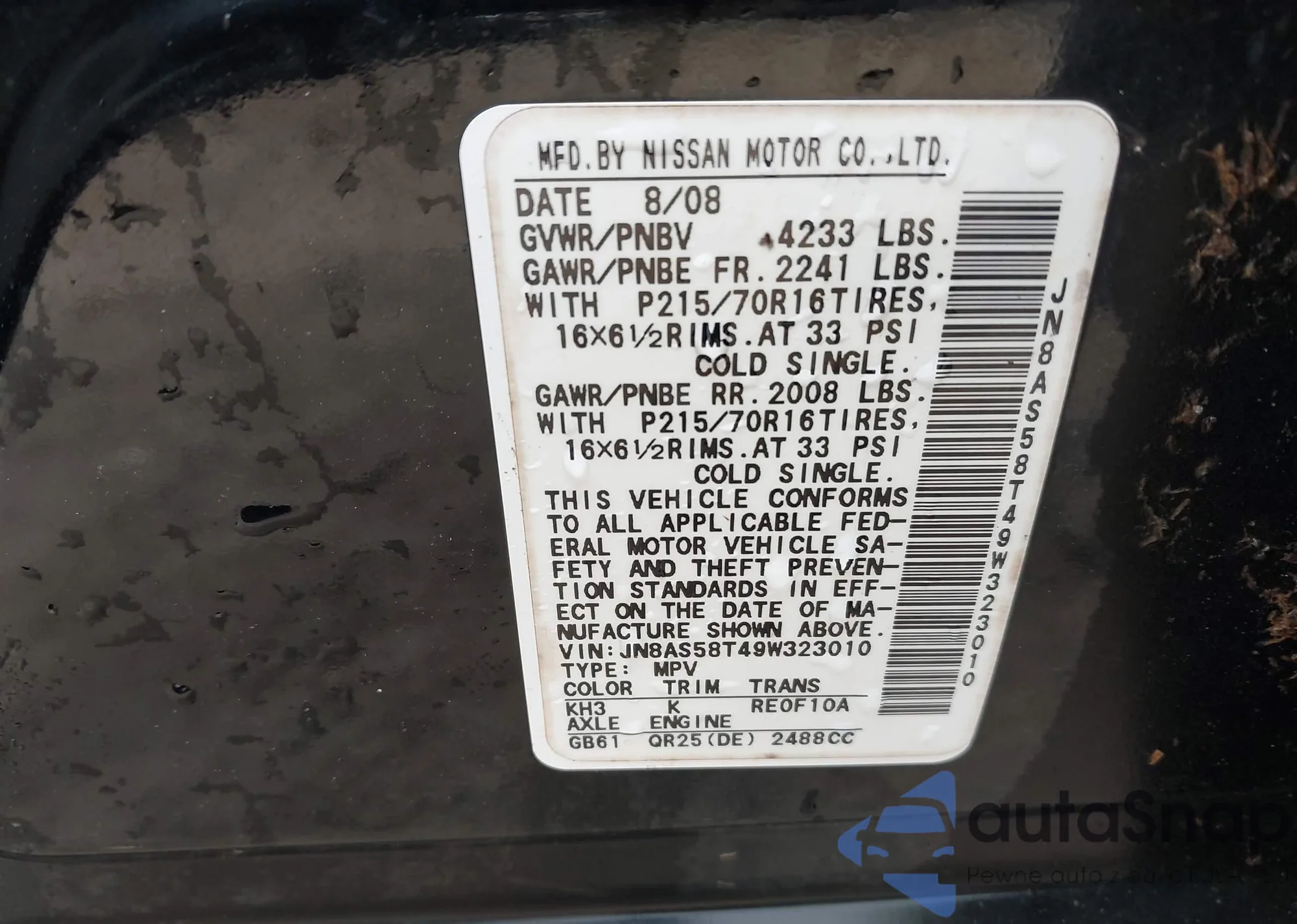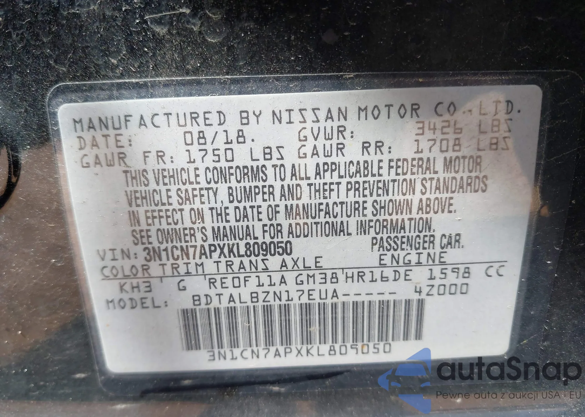 • VIN 3N1CN7APXKL809050