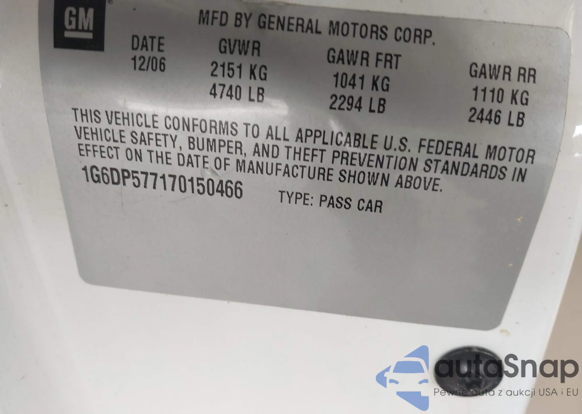 • VIN 1G6DP577170150466