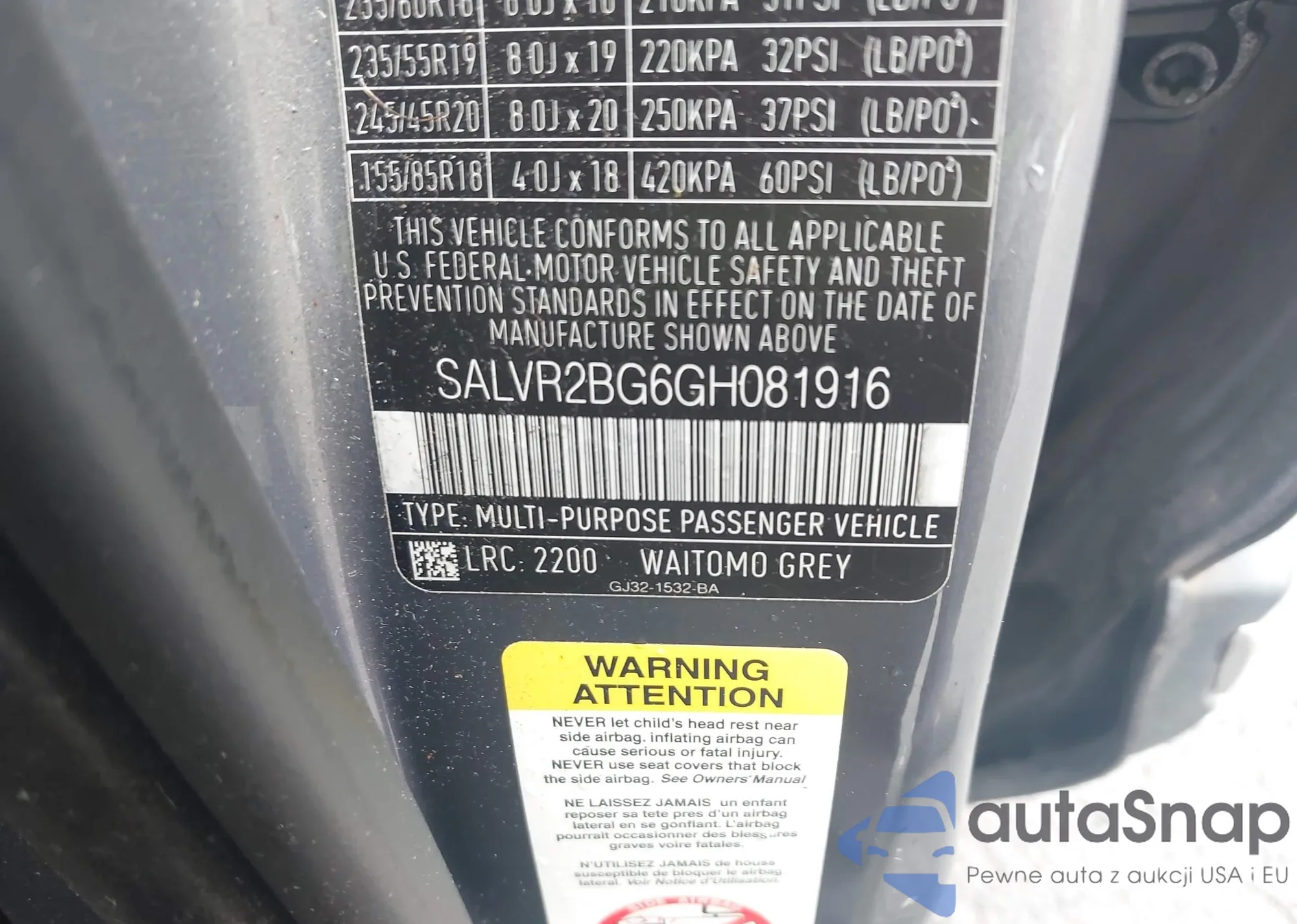 • VIN SALVR2BG6GH081916