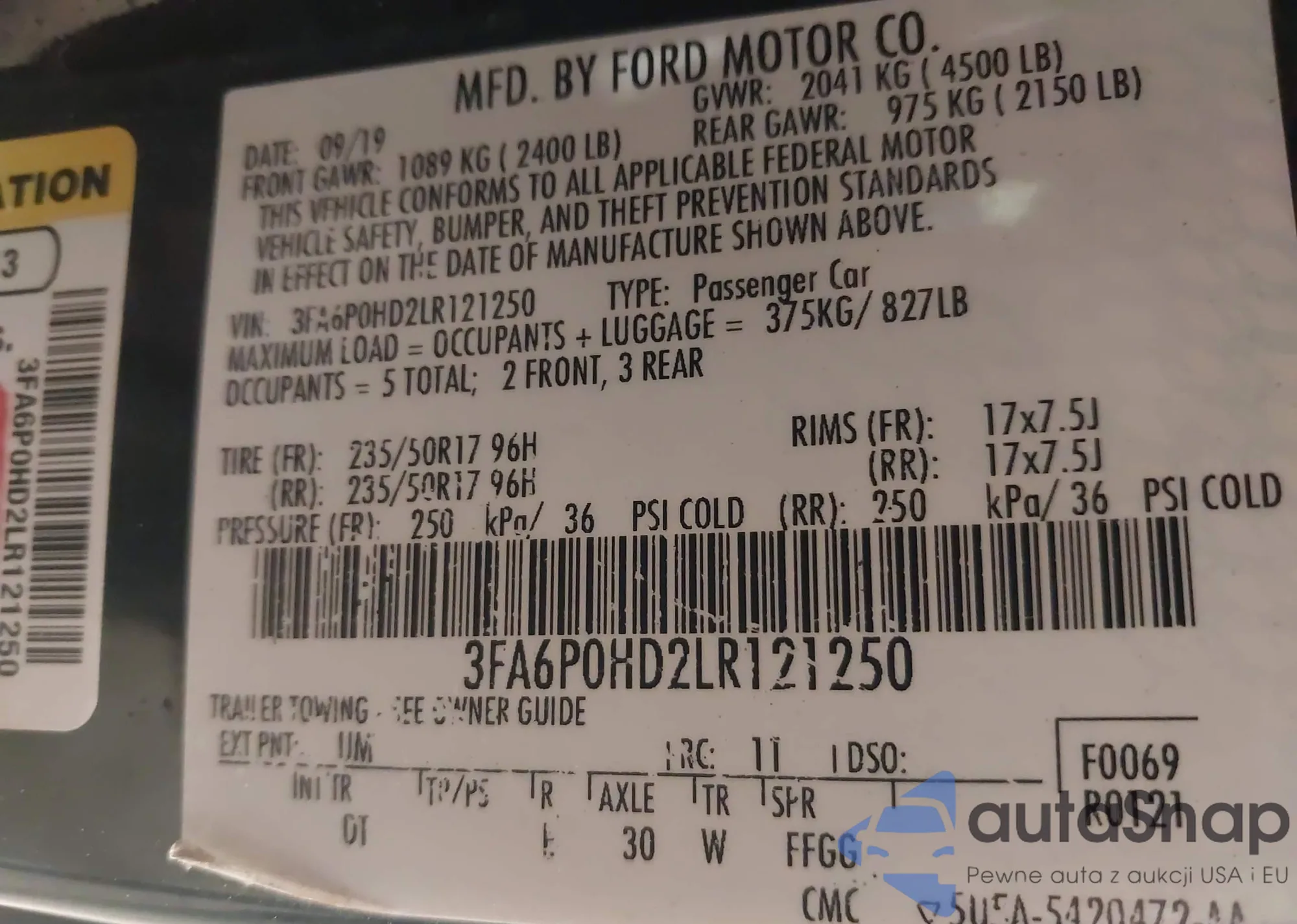 • VIN 3FA6P0H7XFR190394