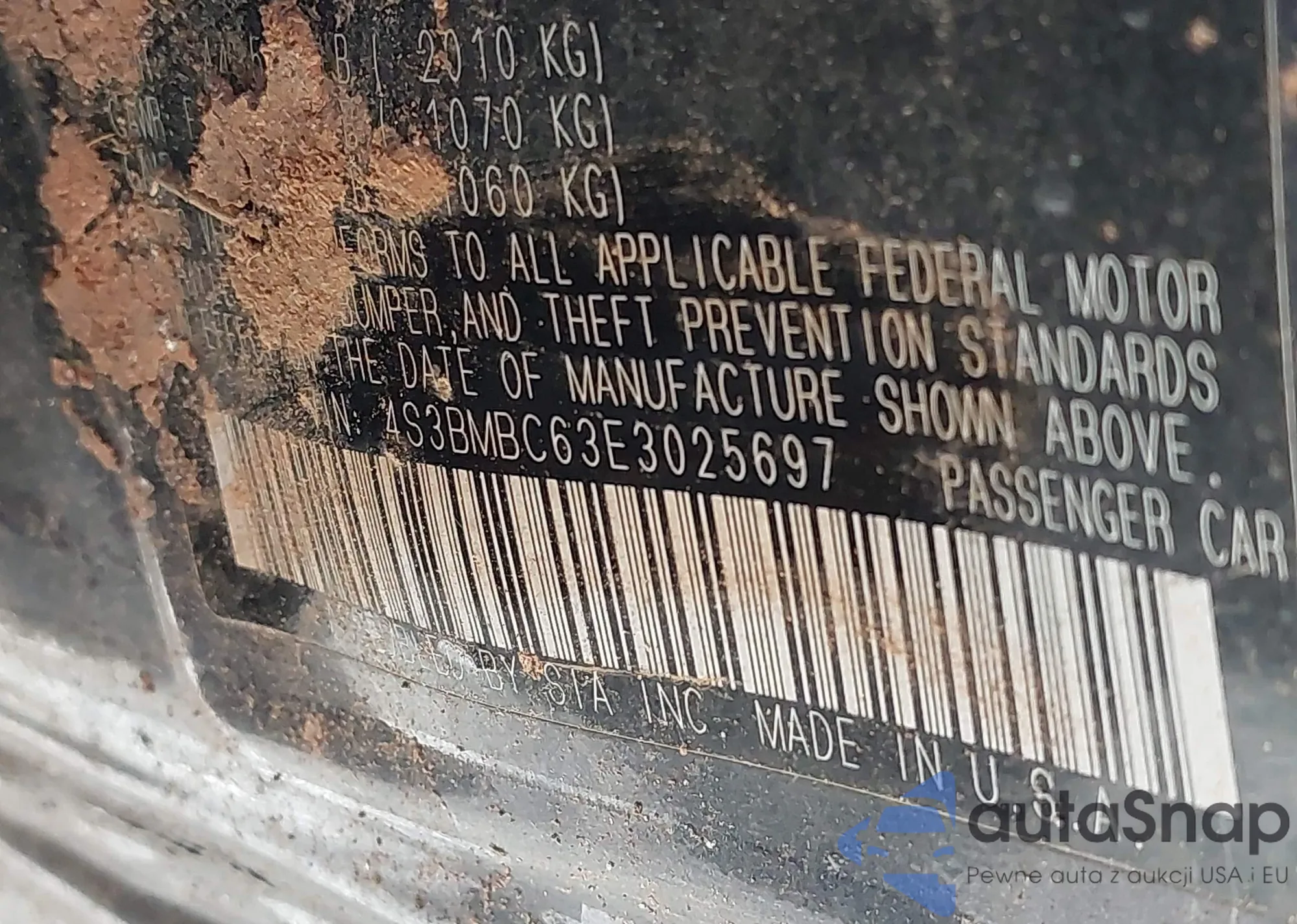 LOT: 42230758 VIN: 4S3BMBC63E3025697