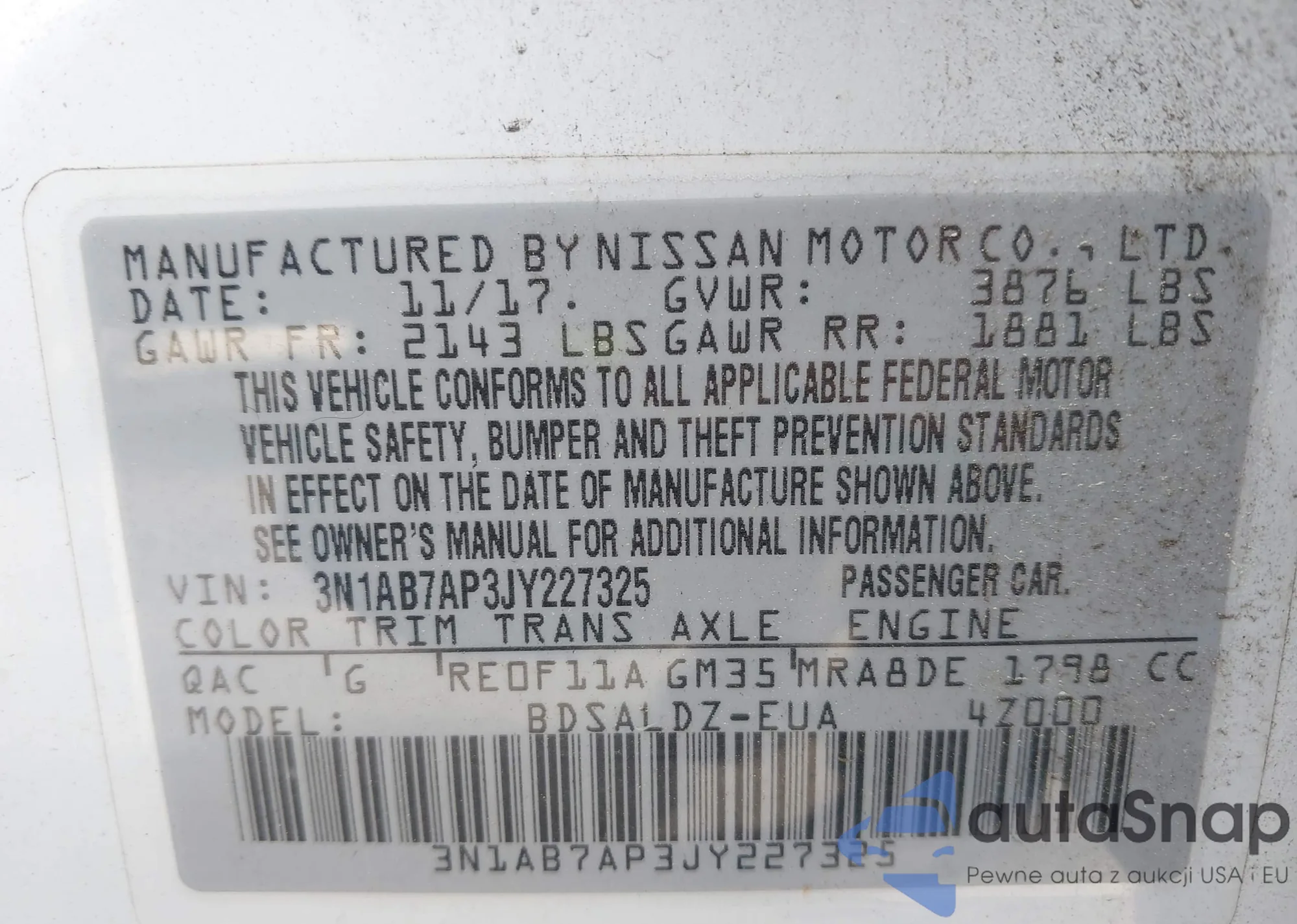 • VIN 3N1AB7AP3JY227325