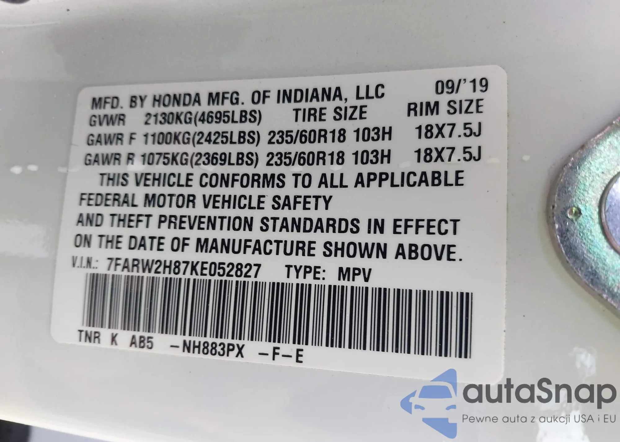 • VIN 7FARW2H87KE052827