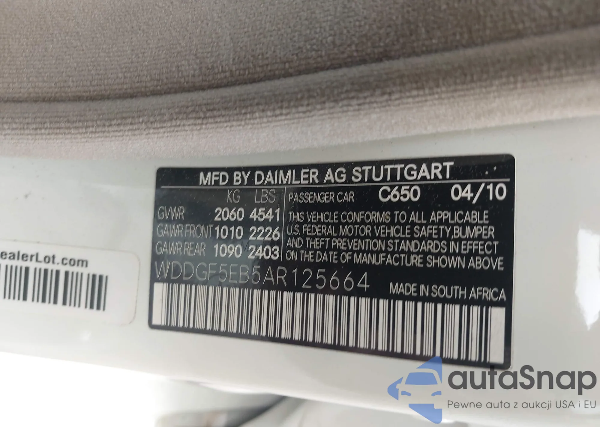 LOT: 42311429 VIN: WDDGF5EB5AR125664