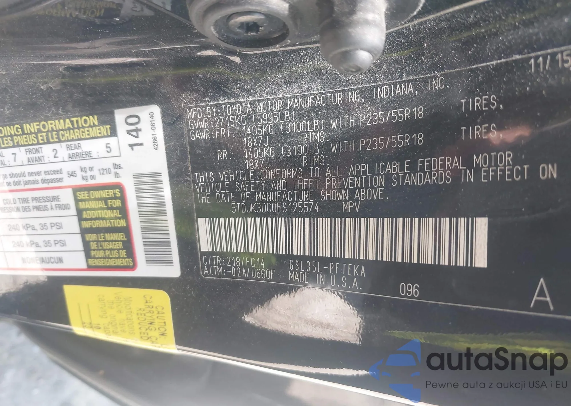 LOT: 42308807 VIN: 7FARW2H87KE052827