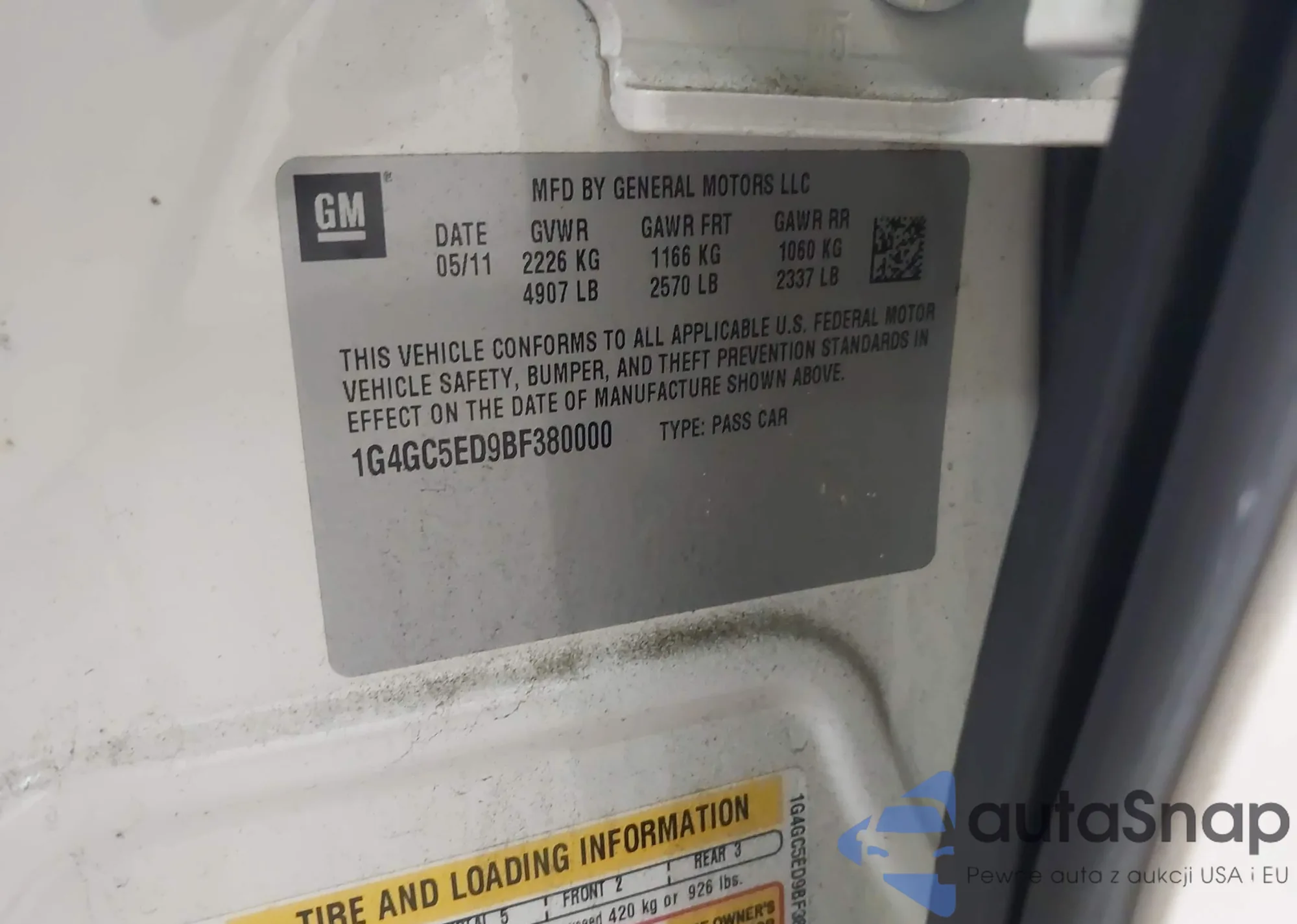 LOT: 42437837 VIN: 1G4GC5ED9BF380000