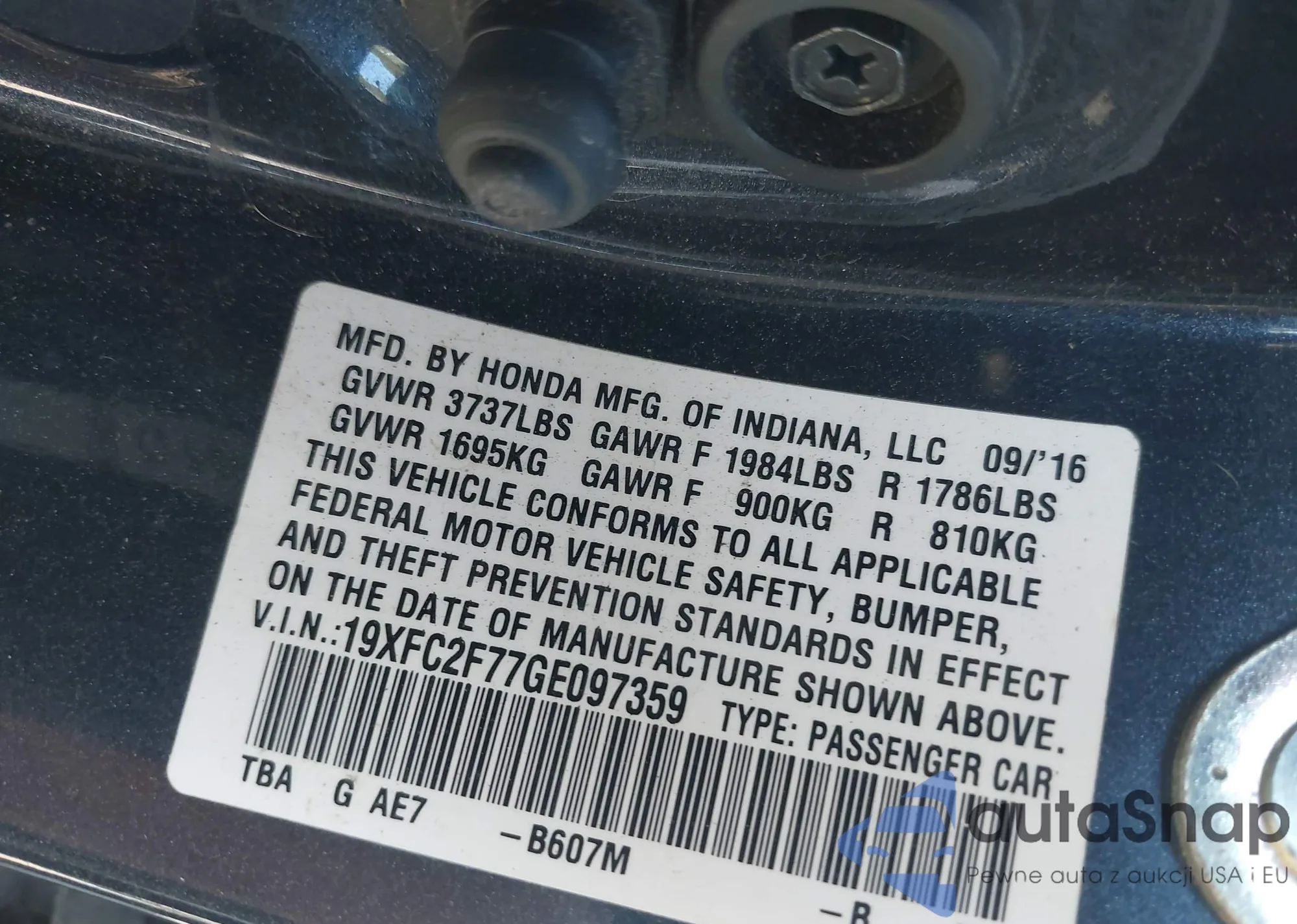 • VIN 19XFC2F77GE097359