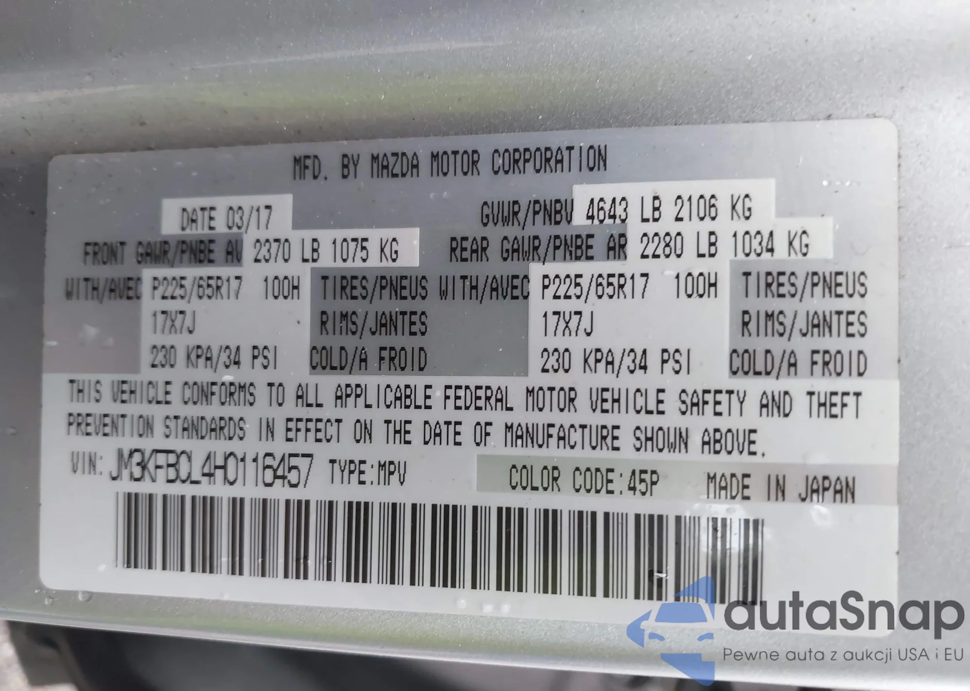 LOT: 42134581 VIN: KM8J23A48JU621431