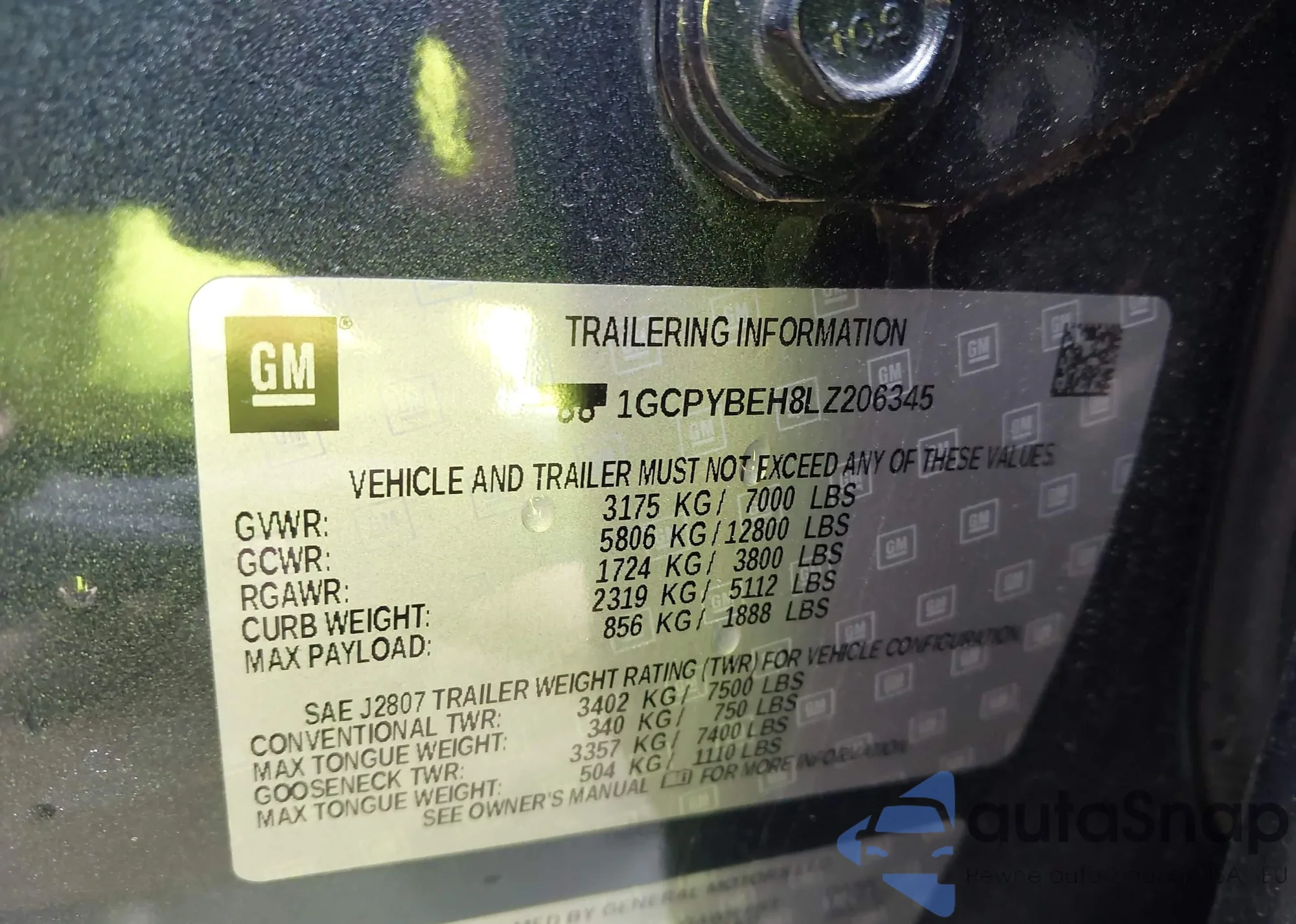 • VIN 1GCPYBEH8LZ206345